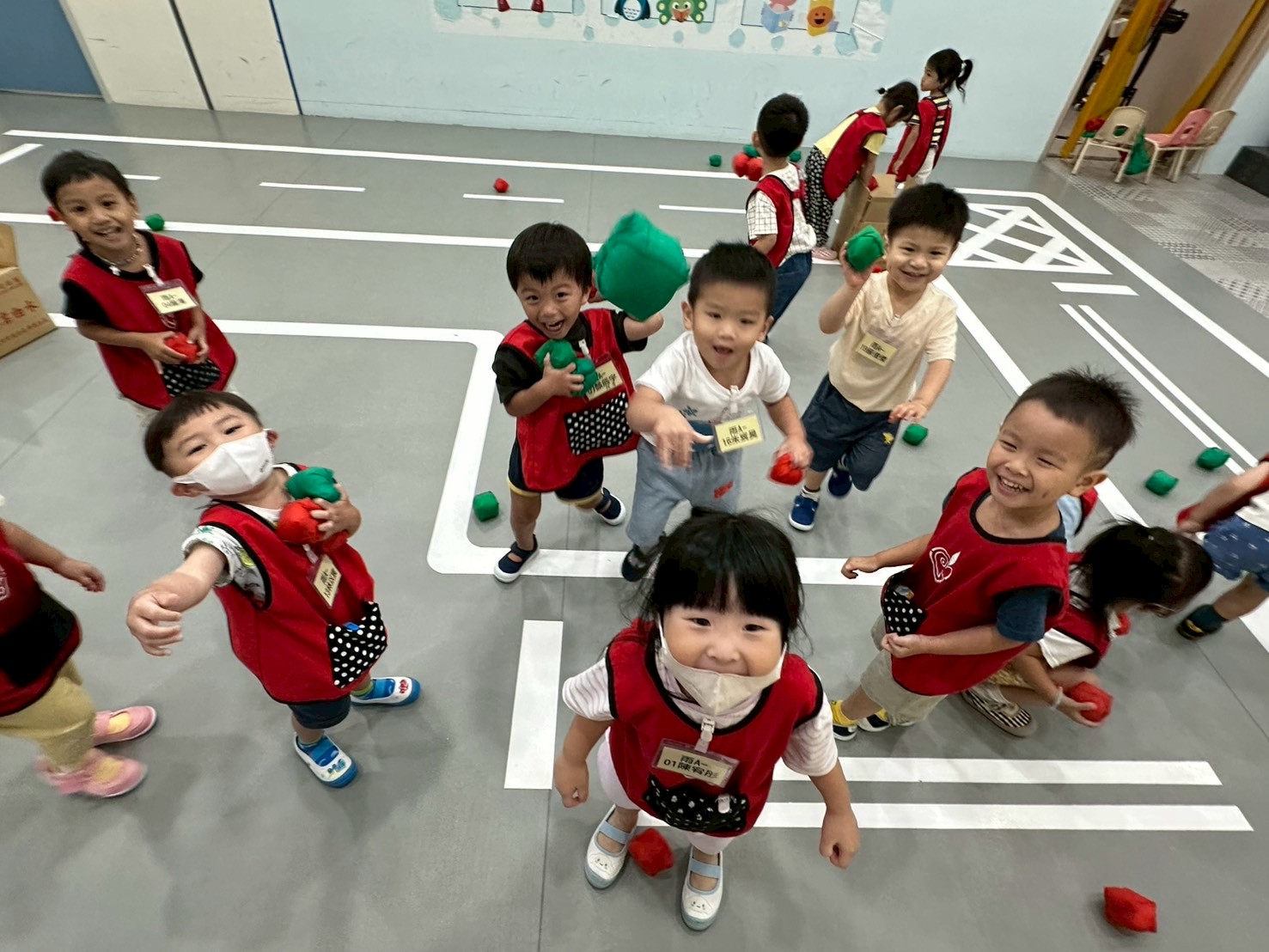 活動目標:1.訓練腿部力量及跳躍能力 2.提高身體動作協調性與靈敏度 3.能夠在過程中保持安全距離 4.能夠瞄準目標物丟球