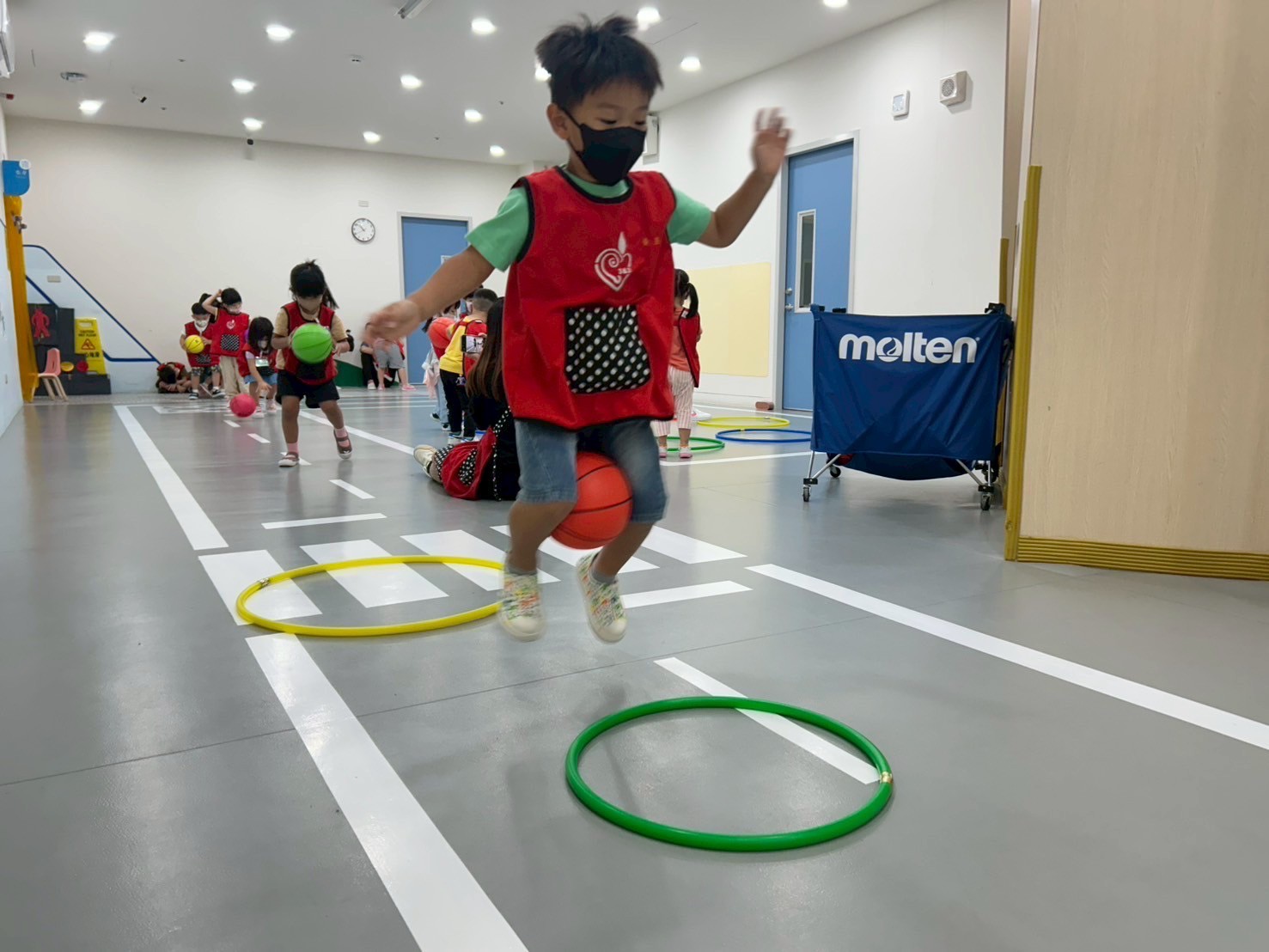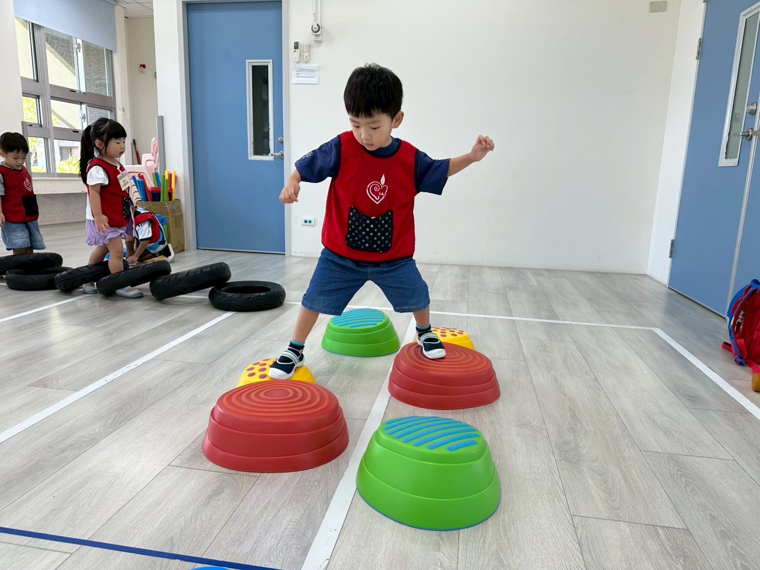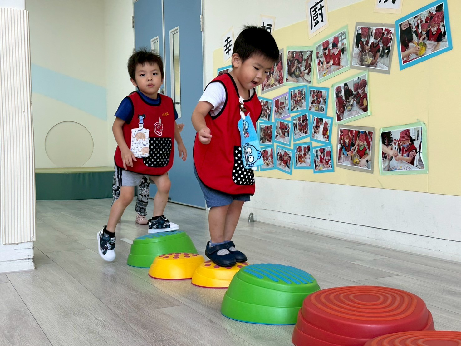 活動目標:1.提升幼兒手、眼、腳協調性 2.培養身體平衡感 3.增進核心肌群肌耐力 4.練習身體移動性動作間的協調