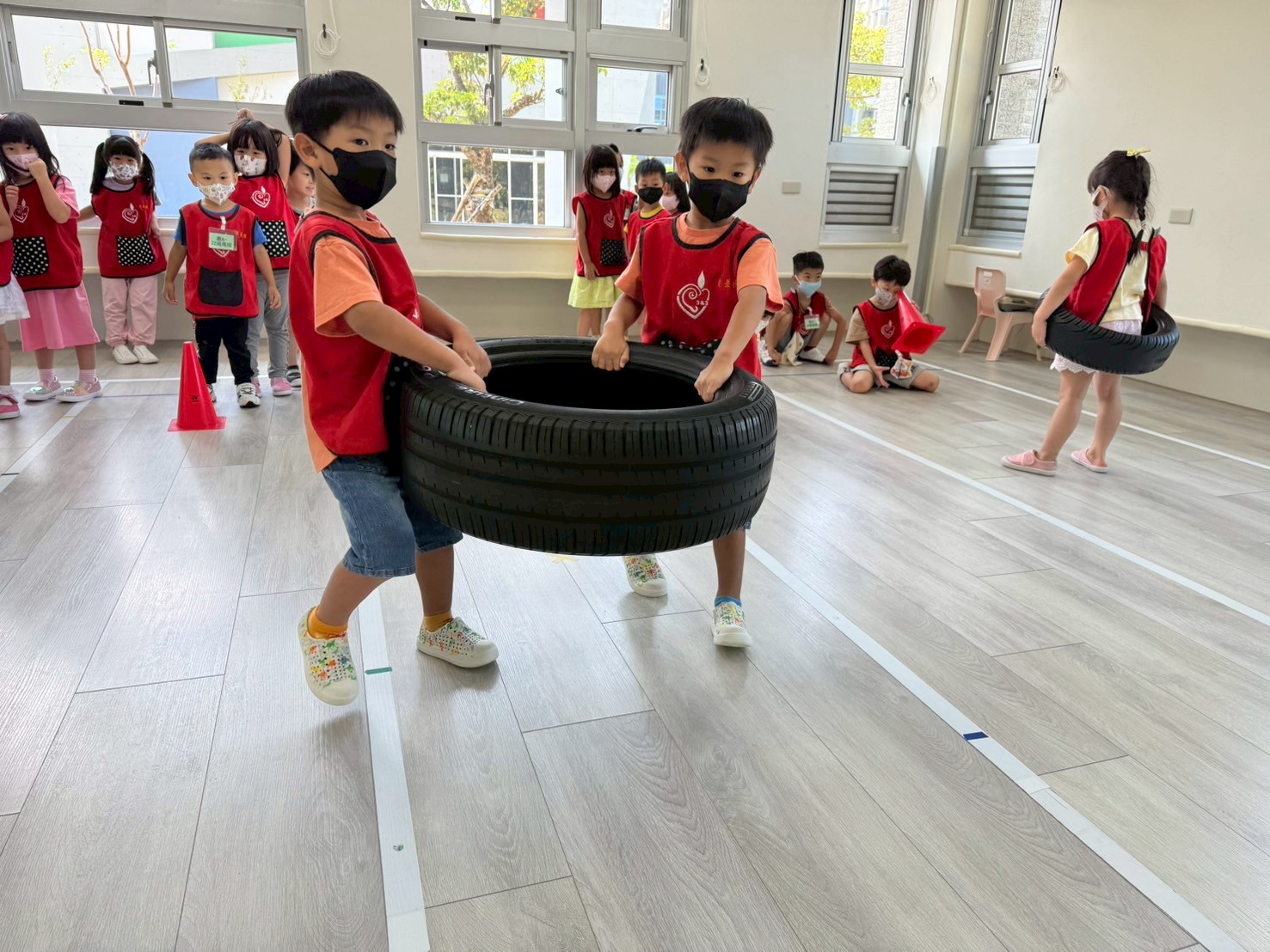 活動目標:1.培養身體協調性、技巧性 2.鍛鍊幼兒上肢肌肉的力量 3.練習聽指令完成動作 4.練習手眼協調與團隊合作