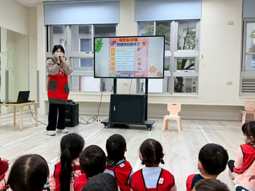 透過簡報帶領幼兒認識日常生活中預防燒燙傷的方法,並以情境劇引導幼兒了解當意外發生時的正確處理步驟,幫助幼兒學習自我保護、降低受傷風險。同時由護理師示範正確的急救處理方式,讓教職人員提升相關知能並強化安全意識。