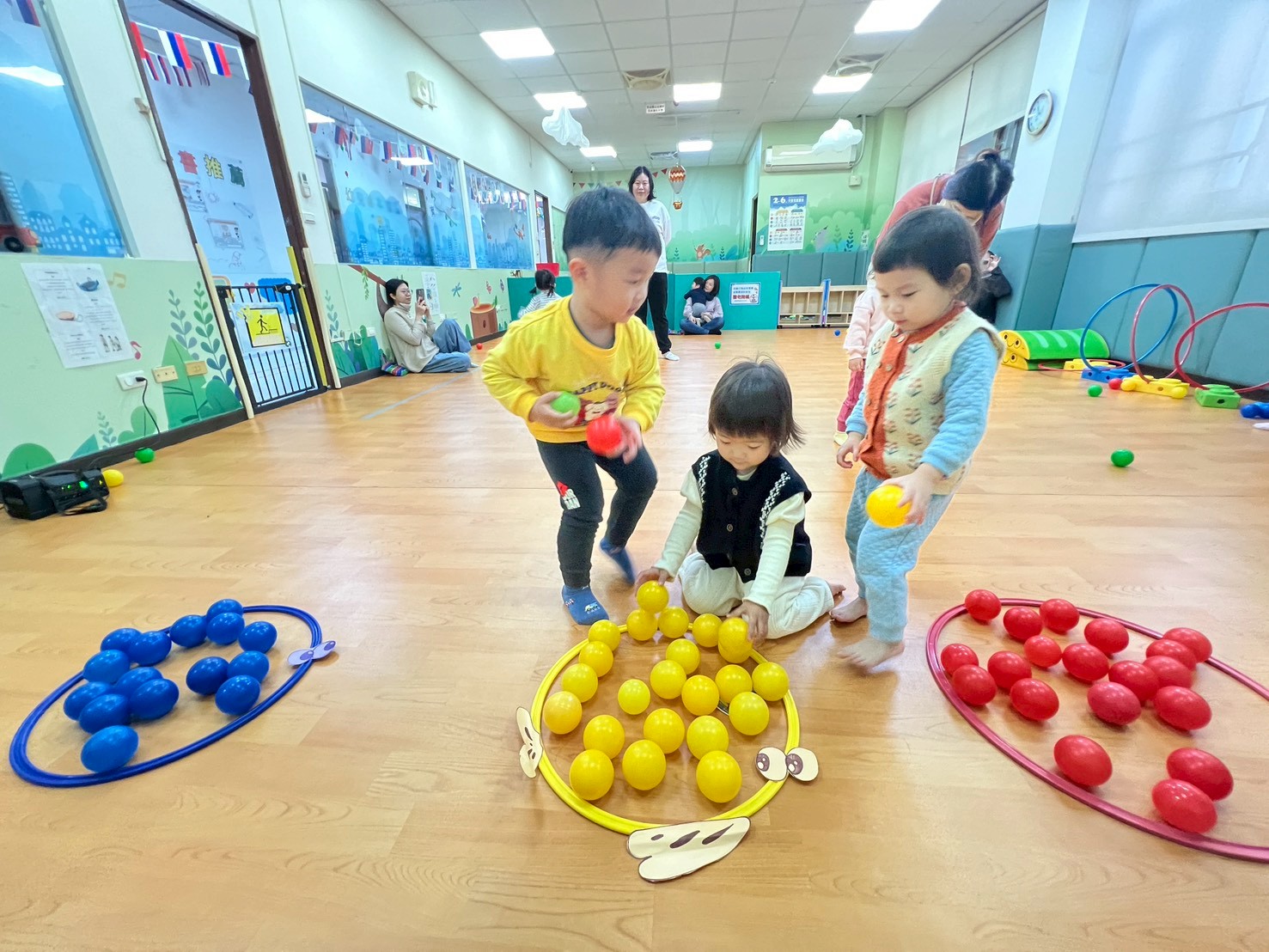 親子先跟著音樂一起動動身體,調整心情準備上課囉,
