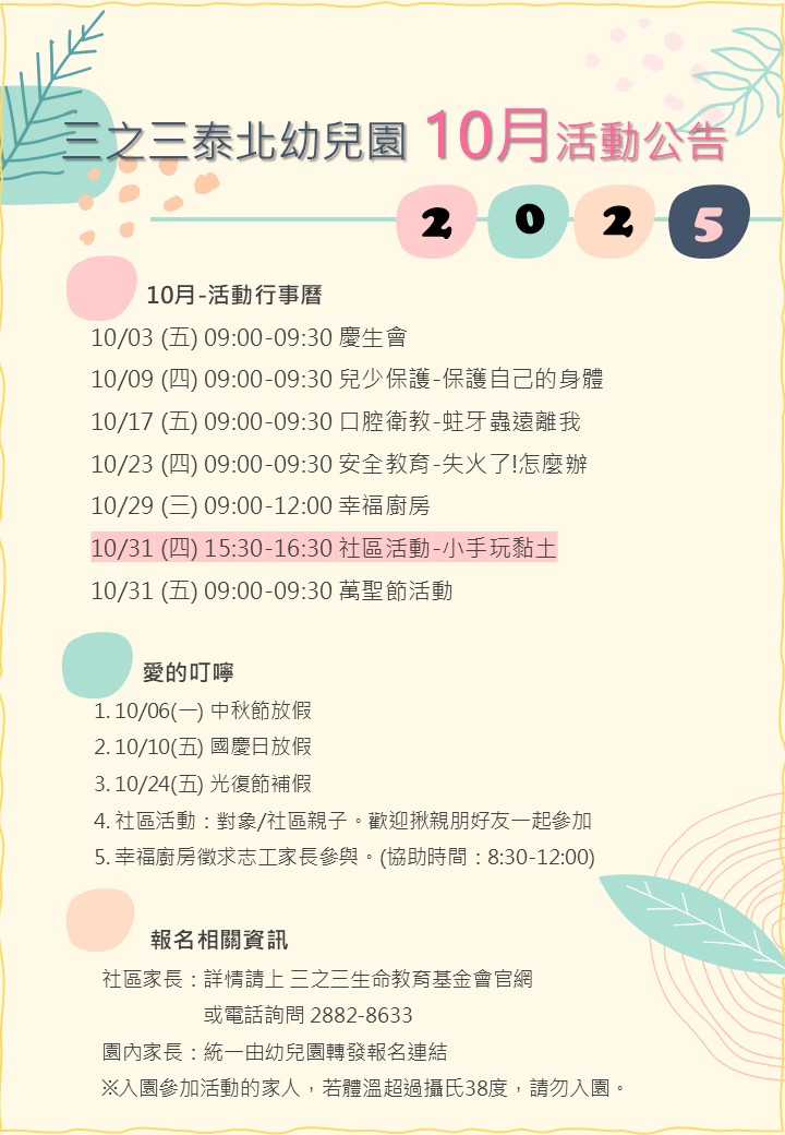 新北市文創非營利幼兒園(委託財團法人三之三生命教育基金會)