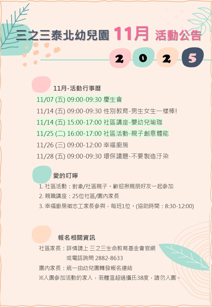 新北市桃子腳非營利幼兒園(委託財團法人三之三生命教育基金會辦理)