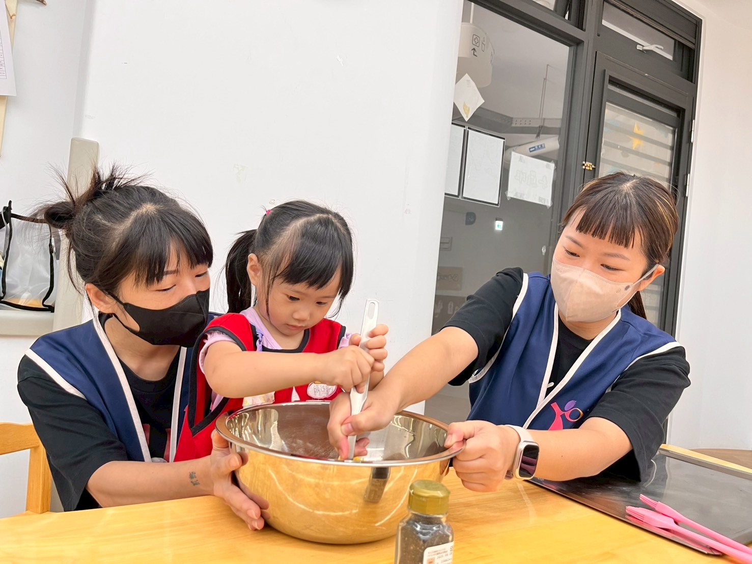 孩子們在製作芝麻餅乾中體驗烹飪樂趣,而有志工媽媽的參與更增添了溫馨與互動,讓這天成為甜美的回憶。