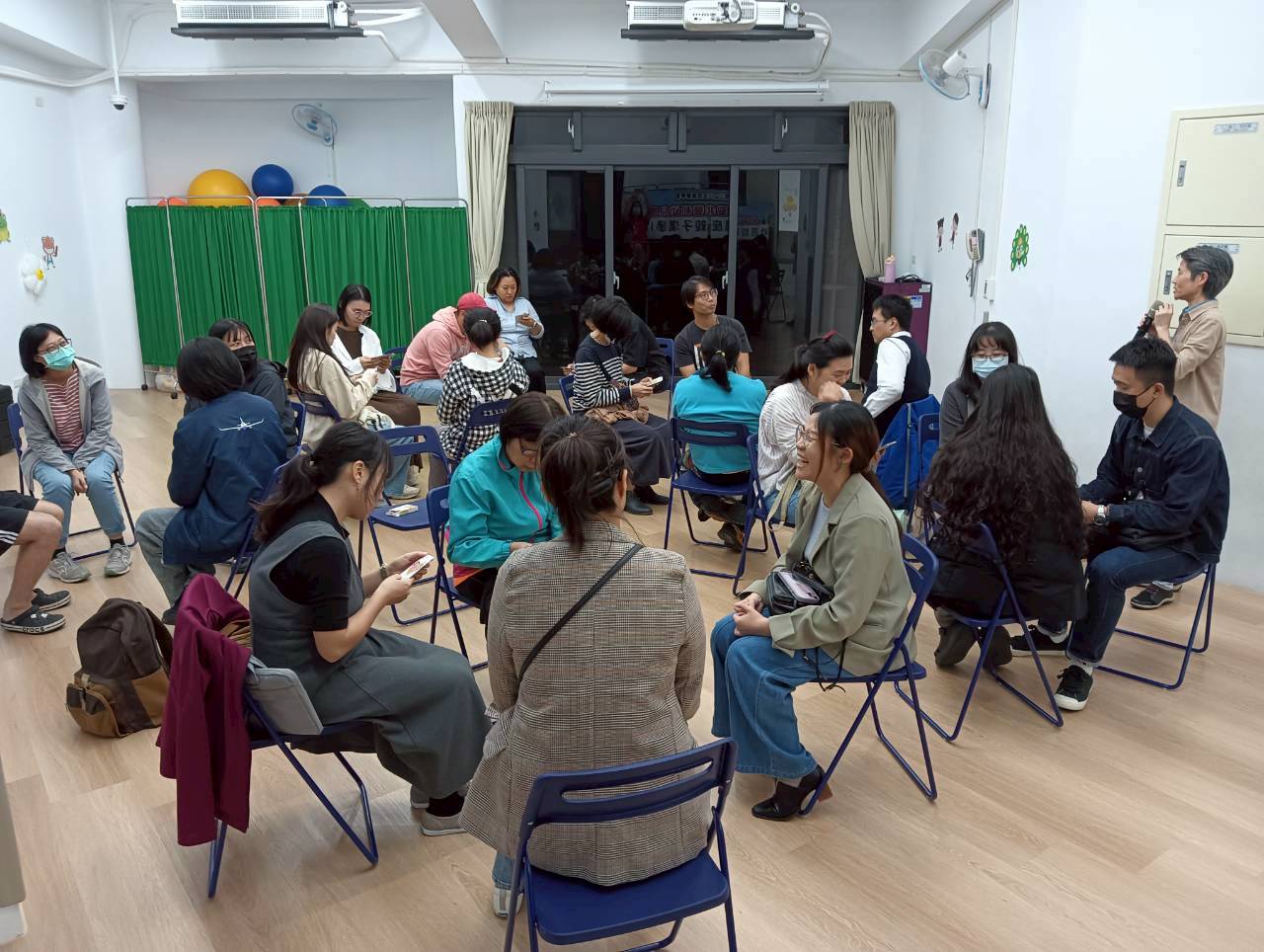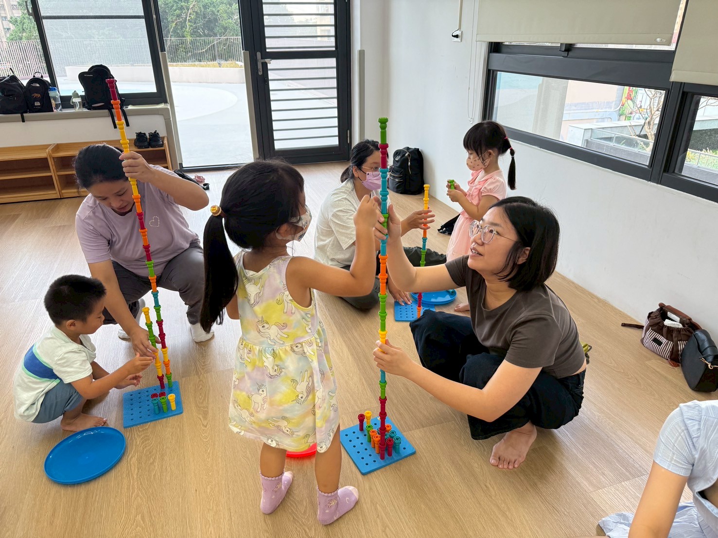 這場邀請潘宇賢 菇菇兒童職能治療師以親子互動感覺統合遊戲,引導家長與孩子一起進行感覺統合發展遊戲,並從體驗過程了解兒童發展及活動內容「回家也能玩」,幫助親子持續練習,協助孩子學會停下來、注意看、仔細聽。