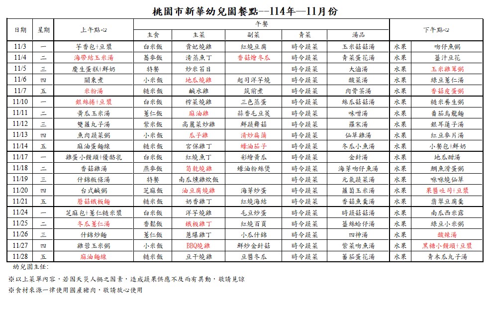 每月菜單