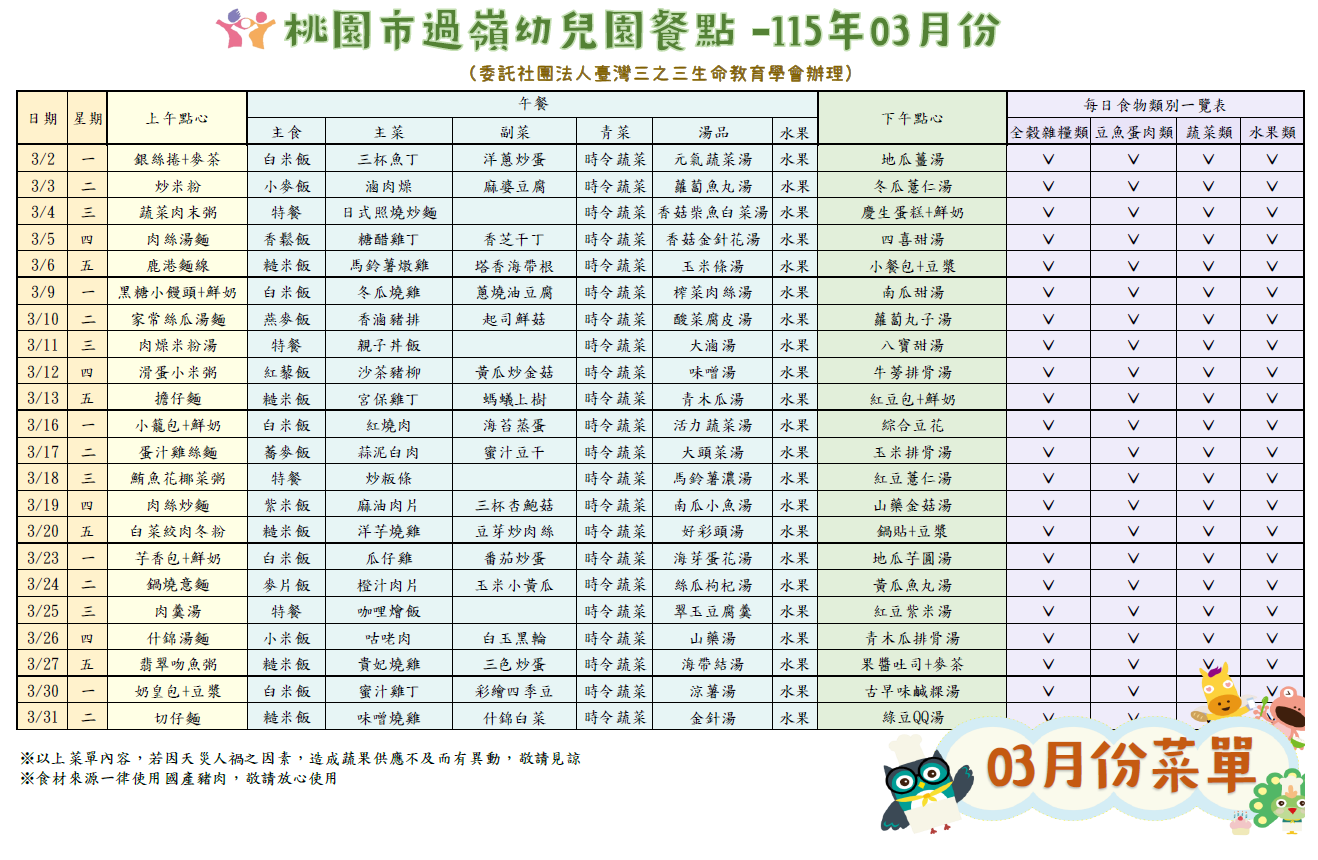 113學年度第二學期 菜單公告