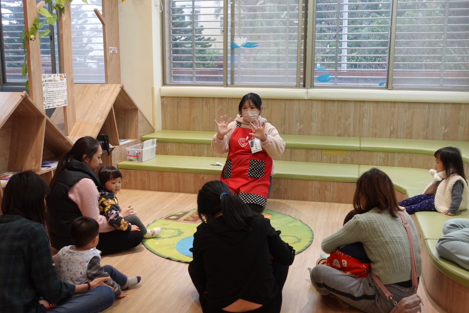 老師帶著親子一起玩「社區logo大挑戰」!大家動動腦,猜猜圖書館、警察局、台電等logo長甚麼樣子呢?有些親子非常厲害的一下子就猜出來了。接著動手時間到,大小朋友們用黏土與泡泡土搓一搓、壓一壓,做出房子上的可愛裝飾,再貼上自己選的logo,讓房子變身成獨一無二的小店。完成後還能帶回家當存錢筒,既有趣又實用,讓孩子在創作中認識社區、做出專屬自己社區的小店!