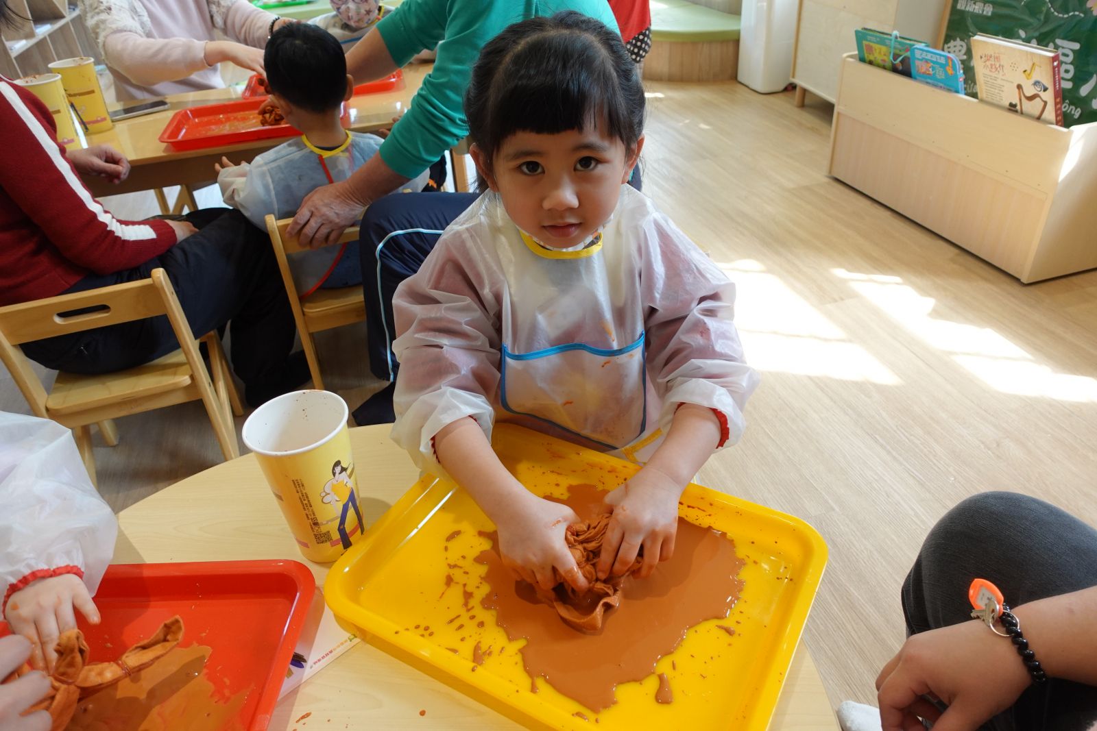 本次活動配合主題:大房子小房子,老師帶大家一起認識台灣常見的房子,親子分享自己的家長甚麼模樣,接著一起製作五彩繽紛的房子,用手指當做畫筆,感受顏料的觸感、色彩的混合,任意地塗抹在作品上,創作出屬於自己獨一無二的房子。作品帶回家後還可以放進自己的小玩具,讓玩具有個家喔!