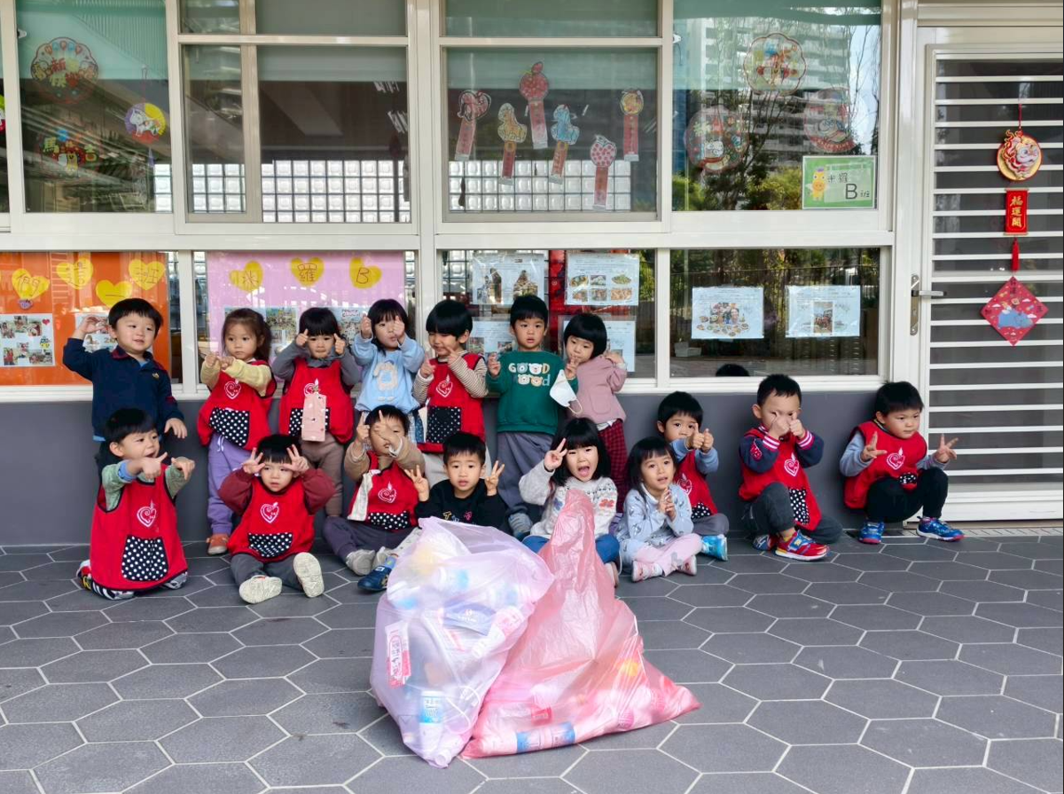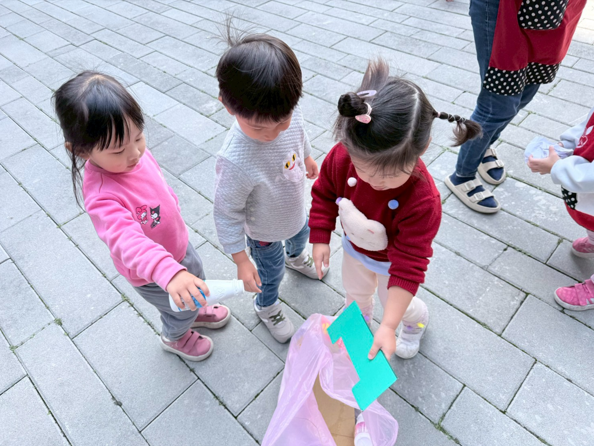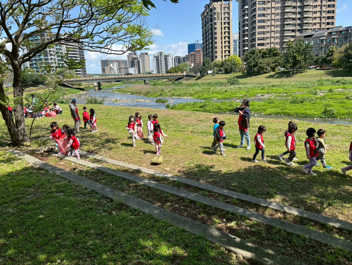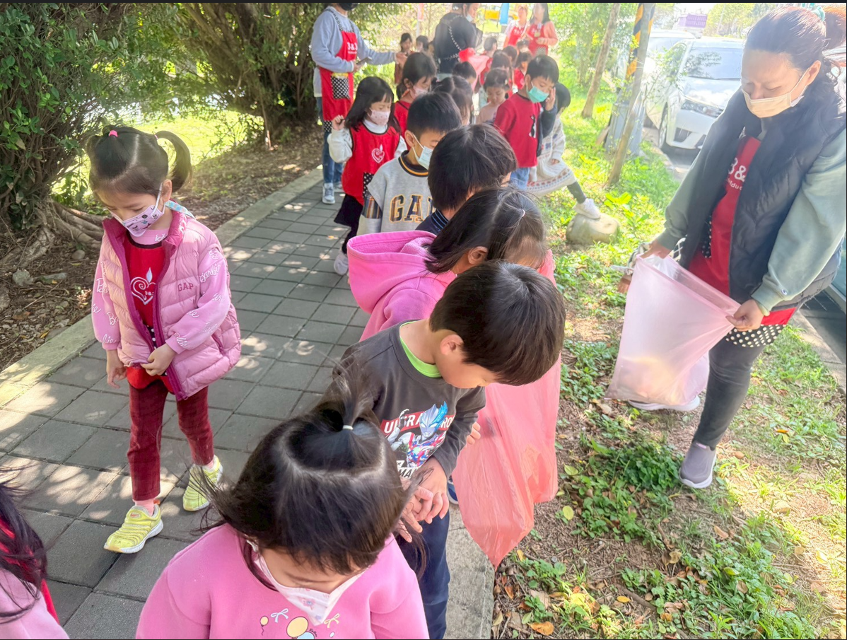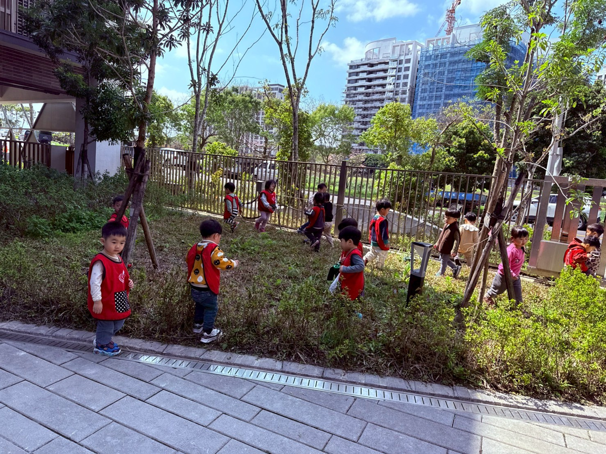 最後,老師帶領孩子們到學校附近的老街溪周邊進行撿拾垃圾的行動。孩子們彎下身、伸出雙手,一起為環境盡一份心力。