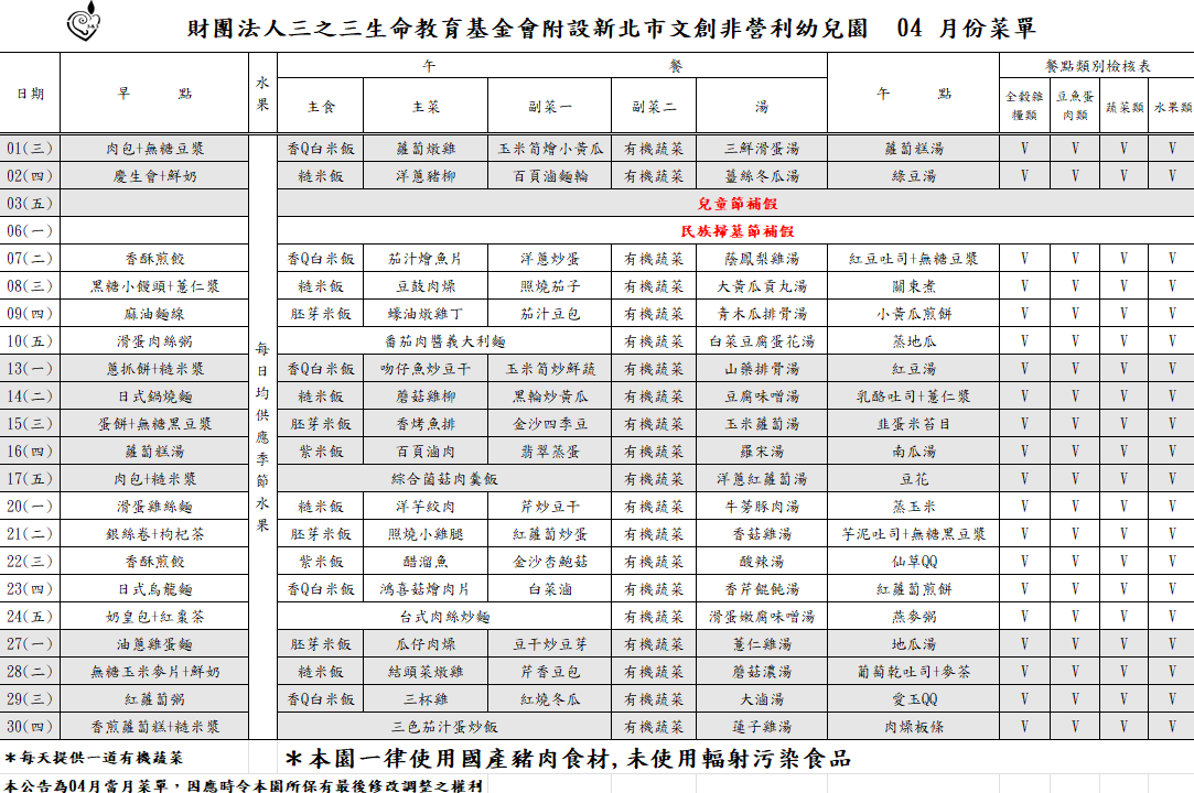 04月菜單