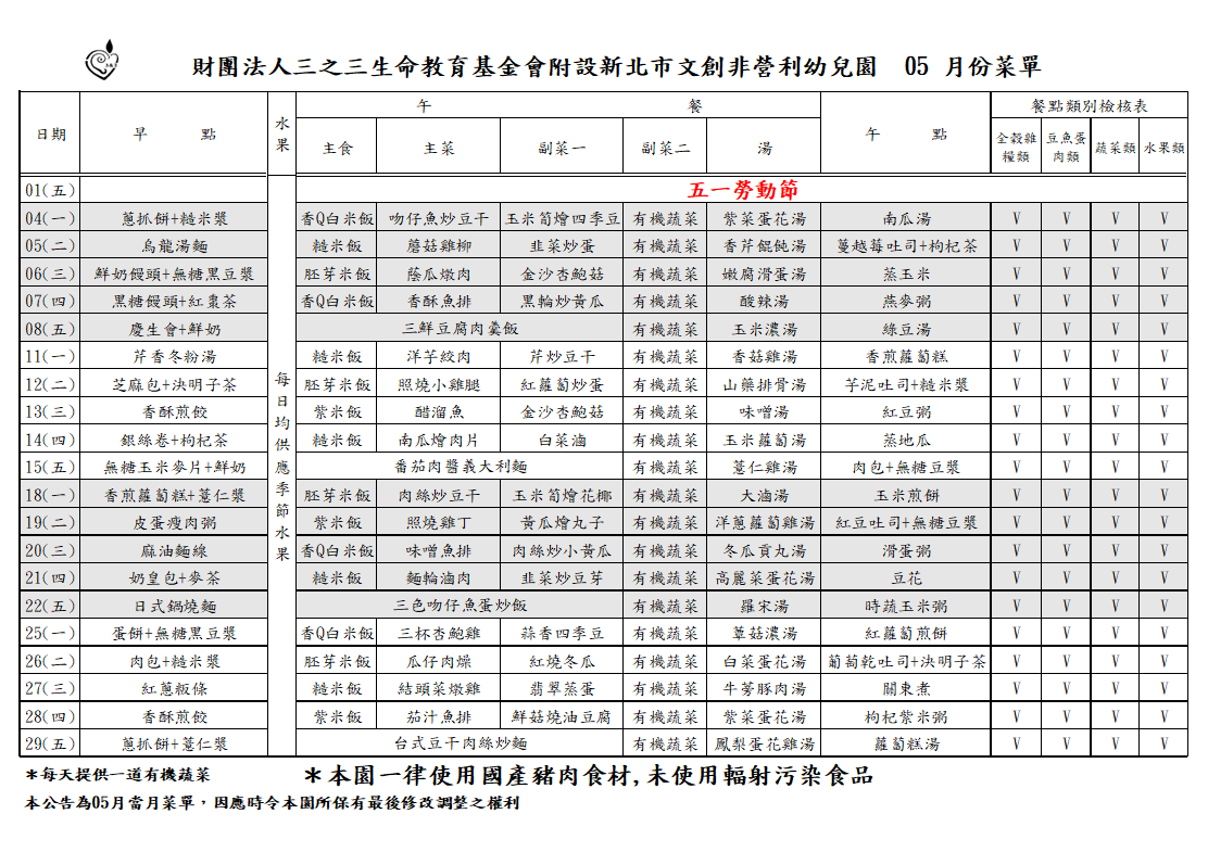 05月菜單
