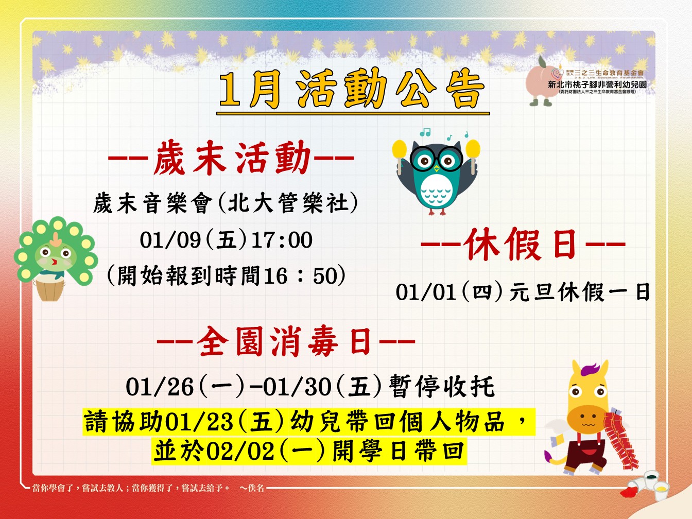 113學年度01月份活動公告