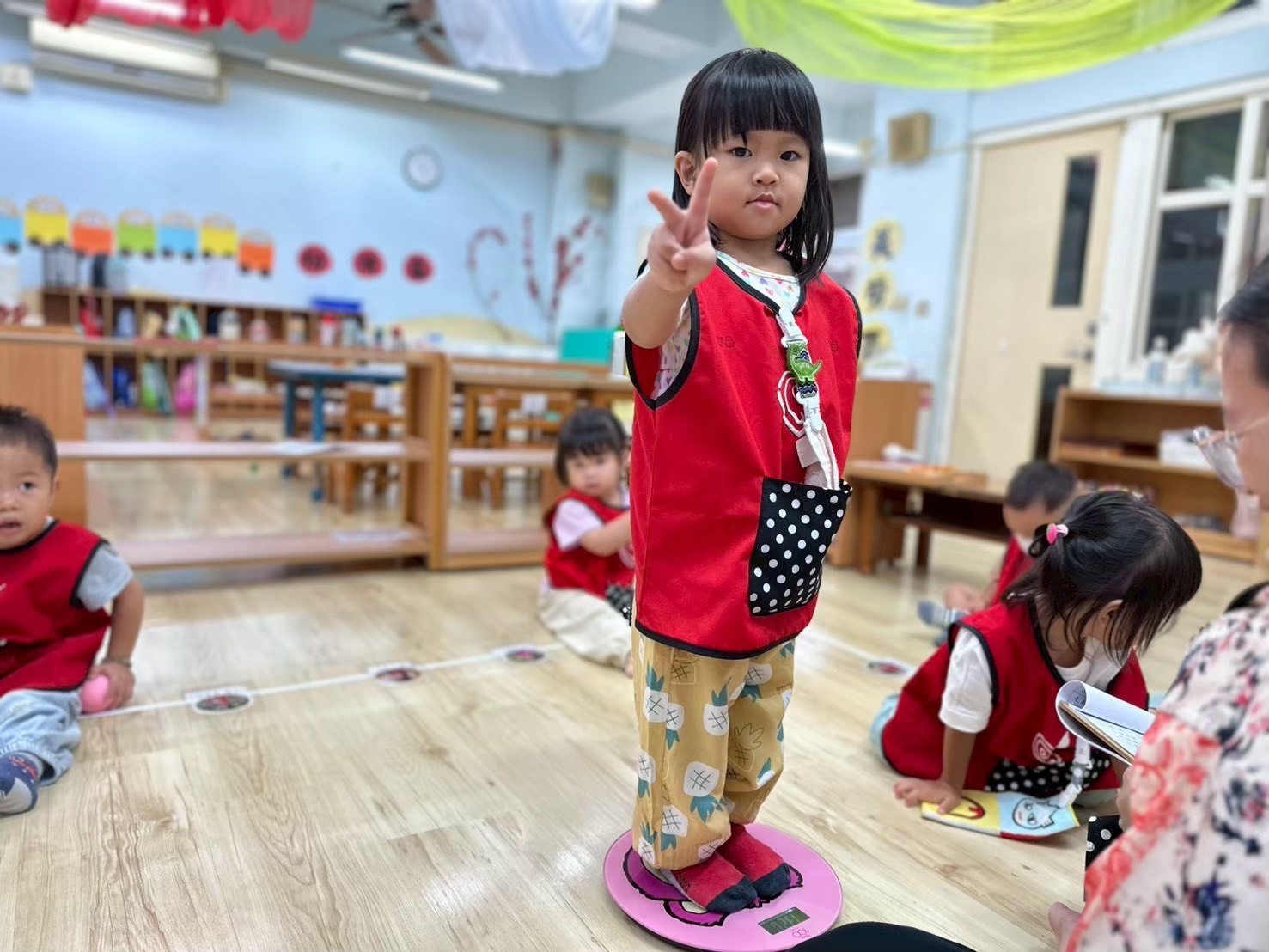 透過學期初的身高體重測量,了解幼兒的健康發展。