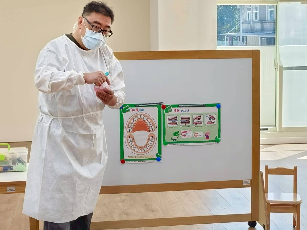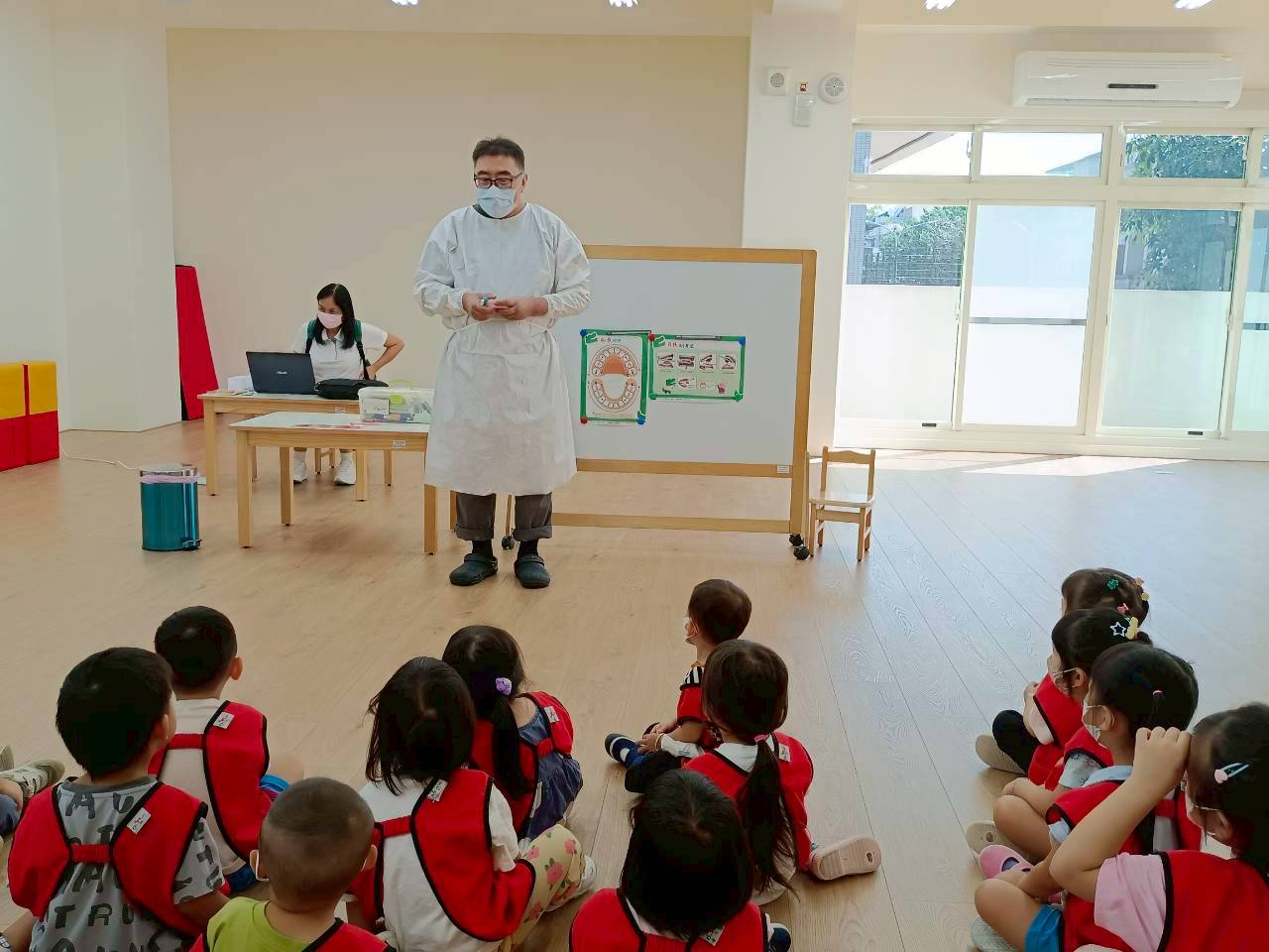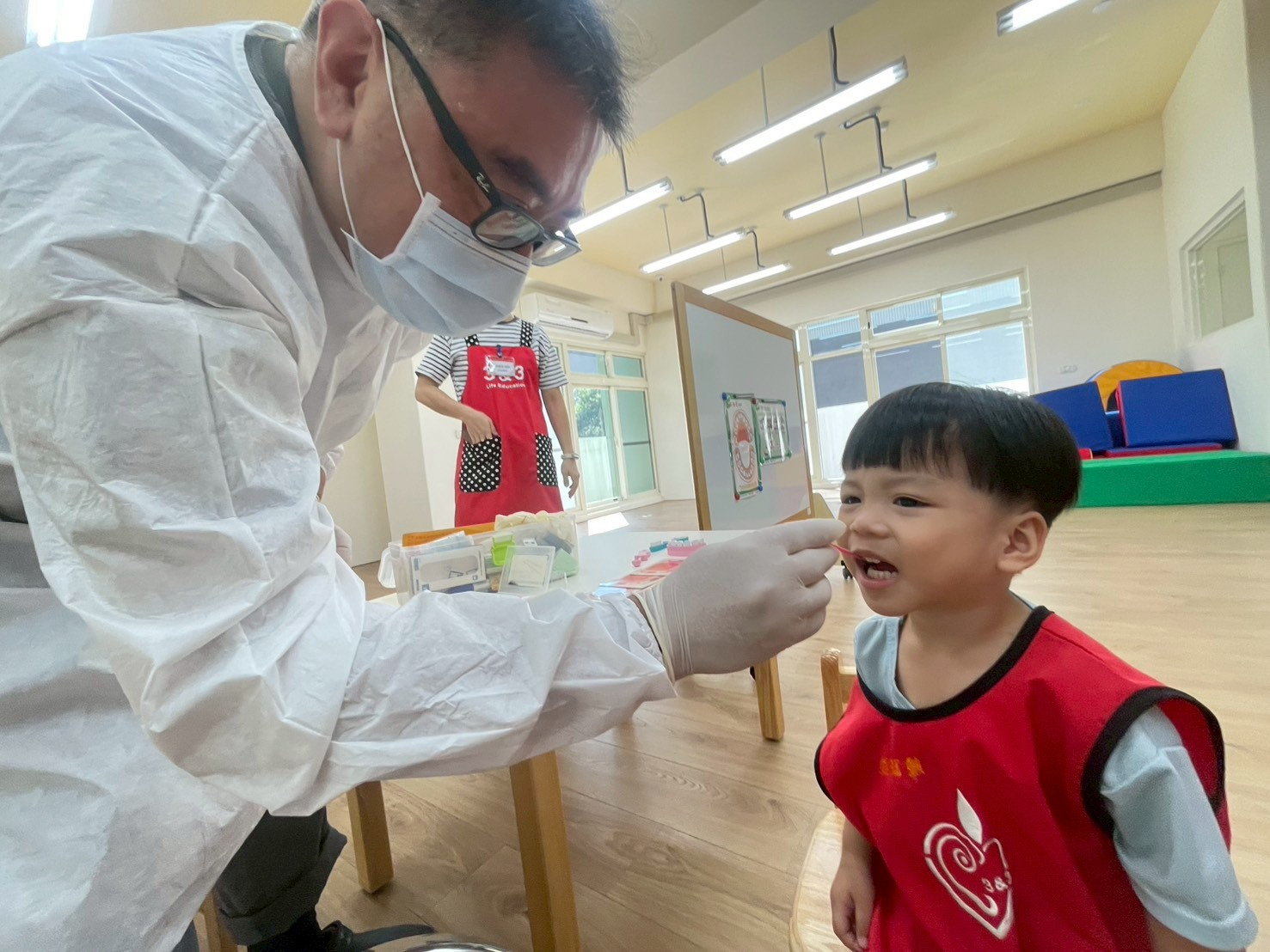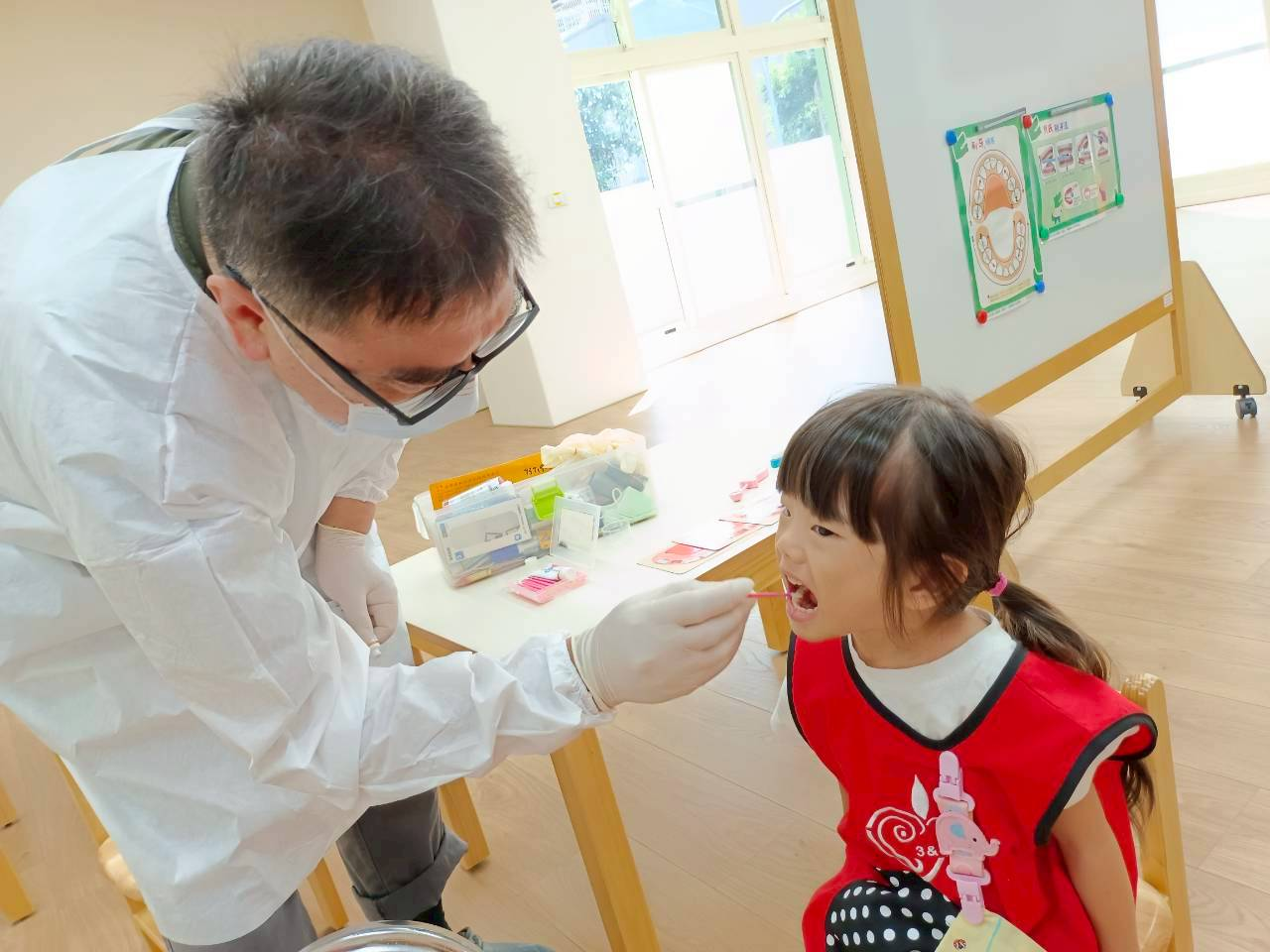 感謝大安牙科牙醫叔叔與護理師阿姨來園幫孩子們進行塗氟和教我們如何正確刷牙方法,乳牙剛長出來時最容易蛀牙,透過定期塗氟可以提升牙齒對蛀牙的抵抗力,活動中也讓孩子了解牙齒對健康與生活的重要性,以及正確的刷牙方式。