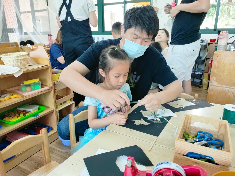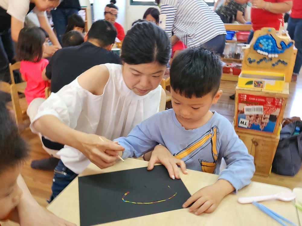 利用繪本故事引導親子利用刮畫創作小魚和媽媽魚,