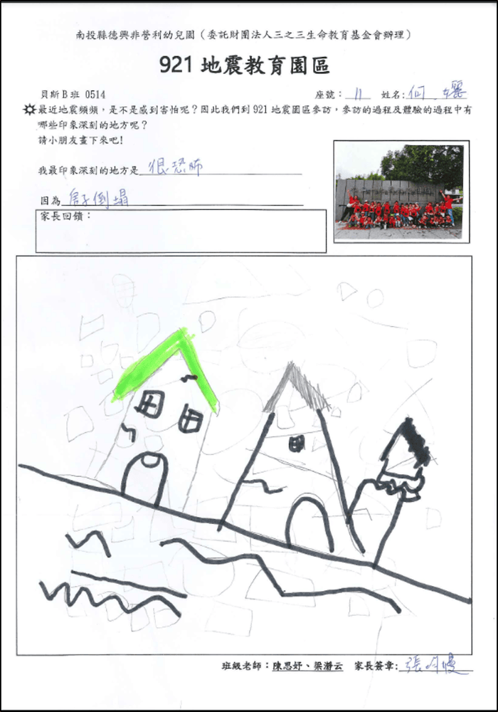 也透過學習單穰孩子紀錄自己印象深刻的事情。