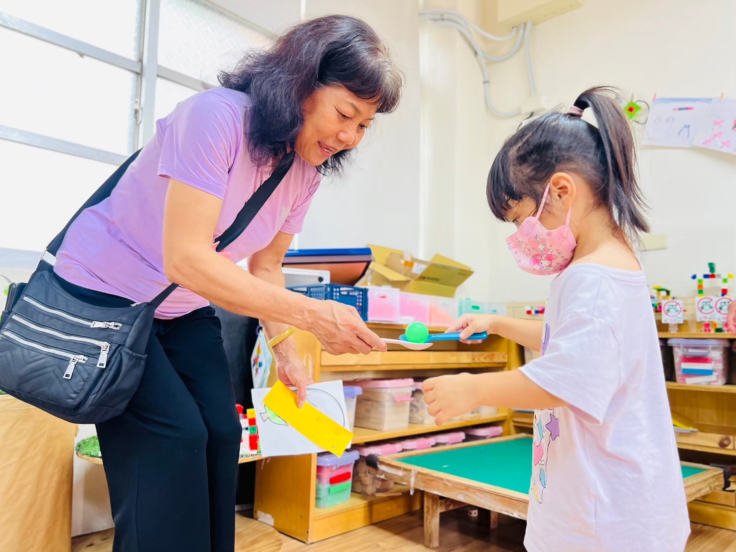 用湯匙將水中的乒乓球撈起,跨越障礙物後,交給家人運回水中,即算完成。