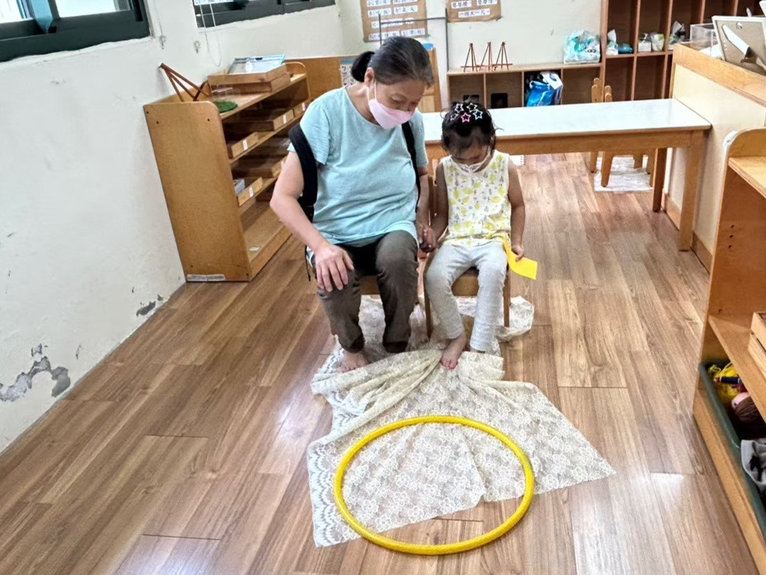 在長方形布條一端放椅子,一端放呼拉圈(月亮),兩人合力用較把布收回來,拿起呼拉圈即算完成。