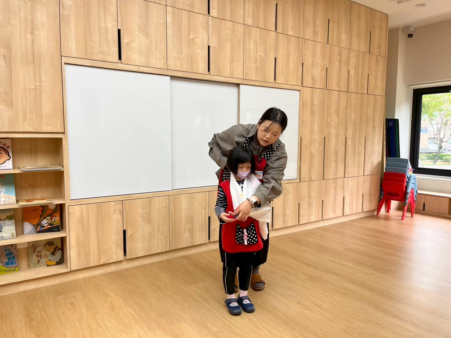 情境:幼兒於戶外活動跌倒,手部疼痛無法順利活動,疑似骨折,教師立即進行初步處理。