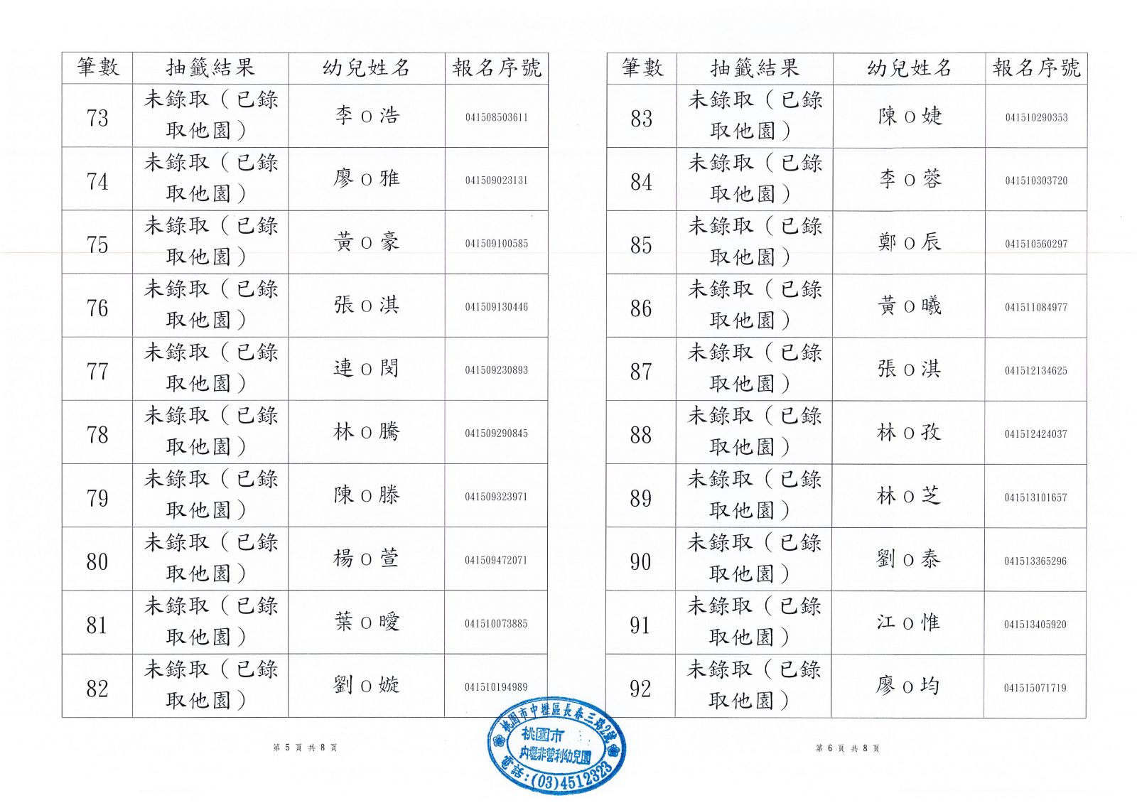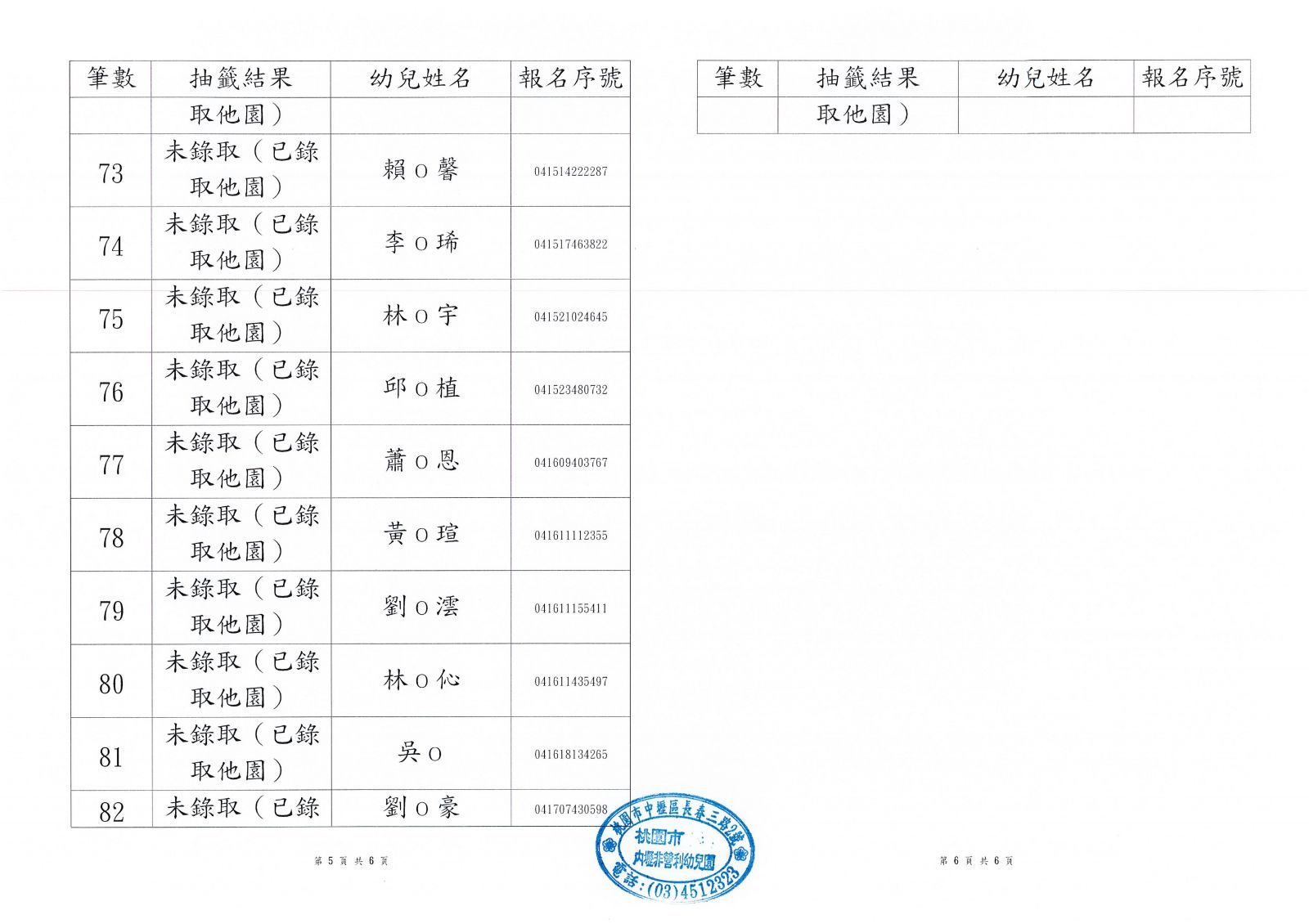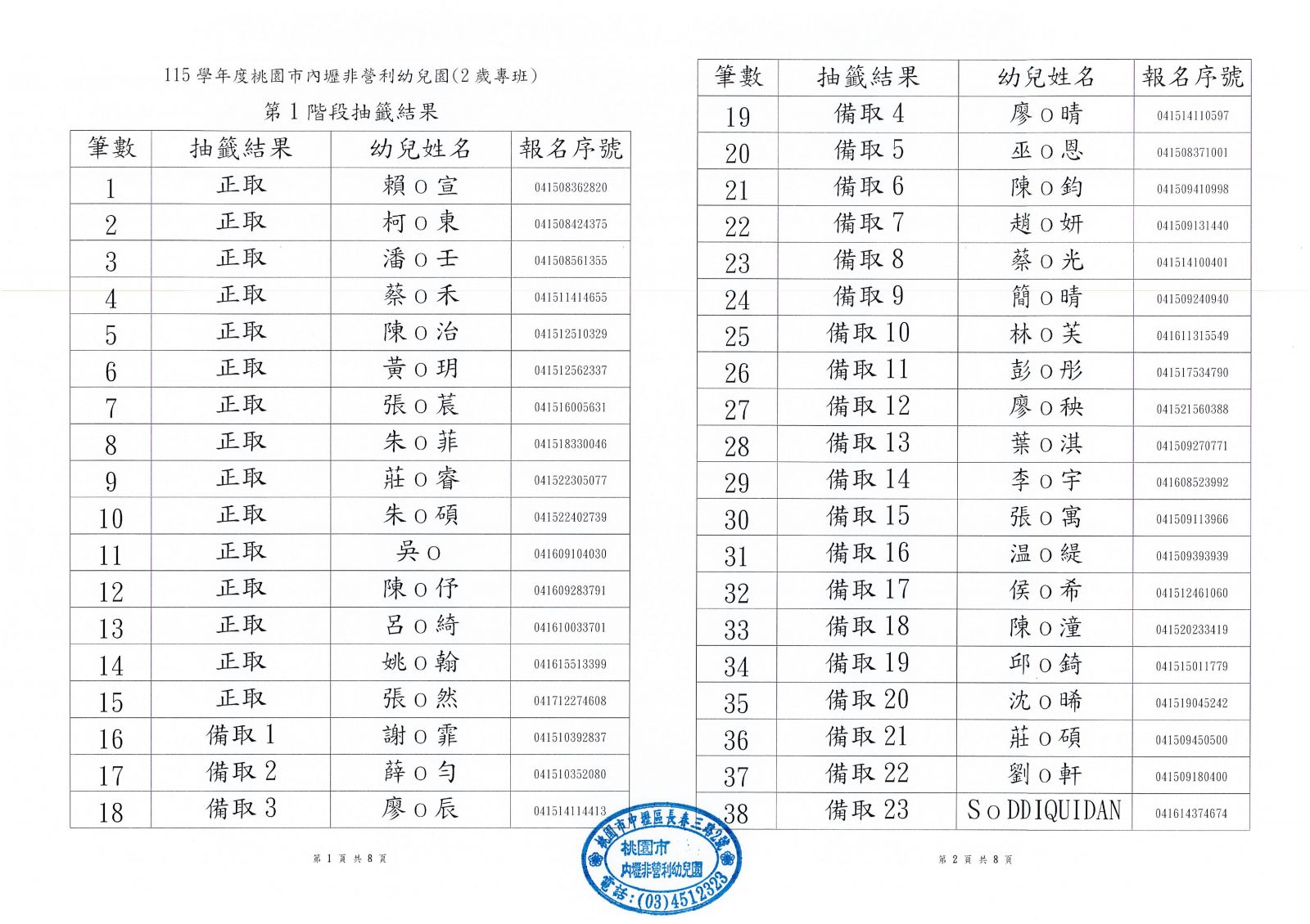 ◆兩歲專班第一階段錄取公告