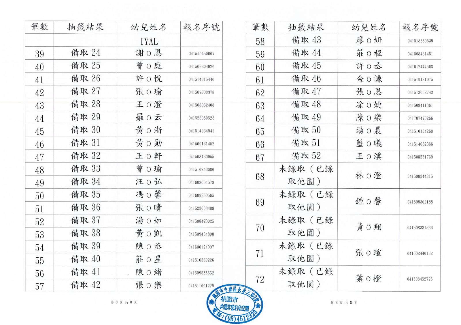 ◆3-5歲專班第一階段錄取公告