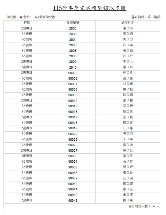 115學年度第二階段招生抽籤結果完成報到名冊