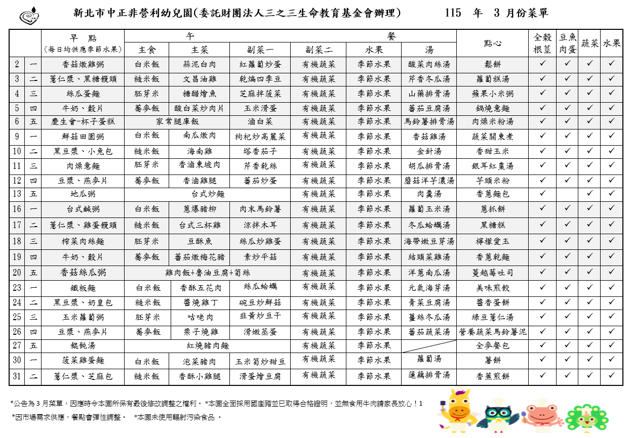 115年03月菜單