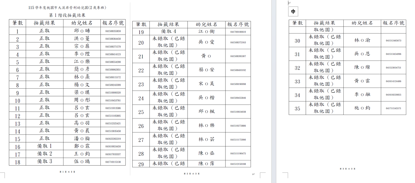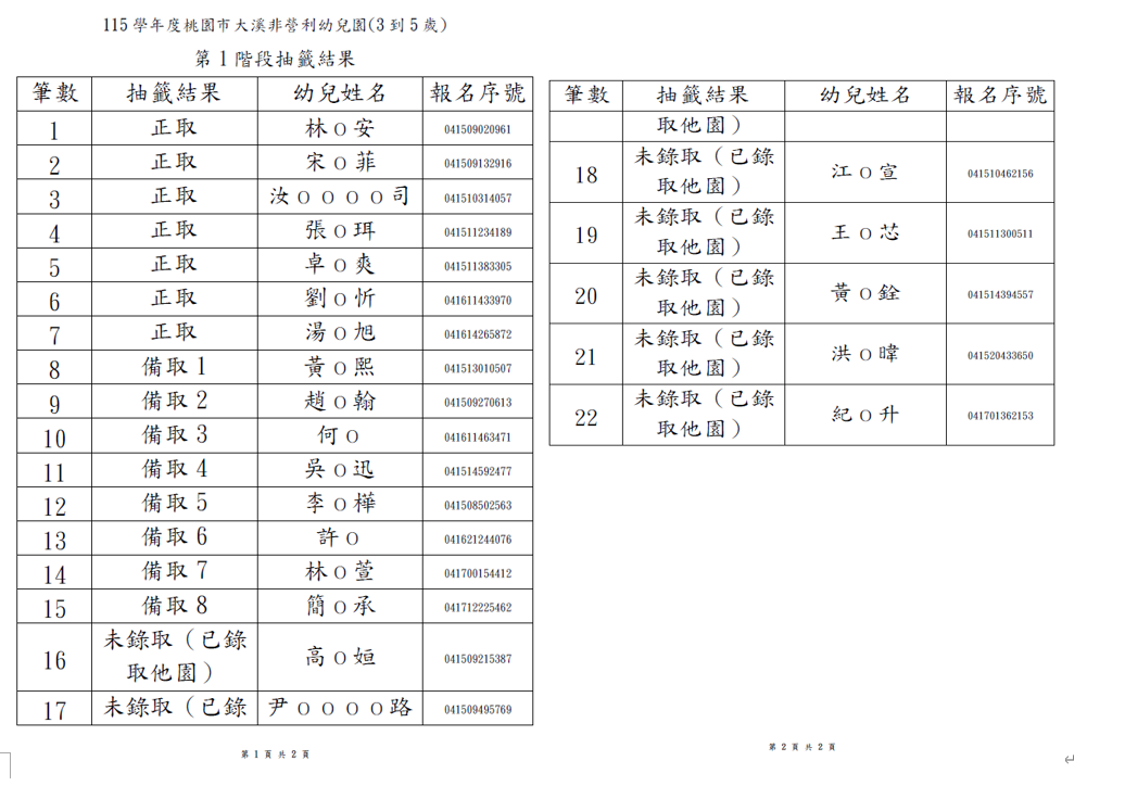 115學年第一階段錄取名單