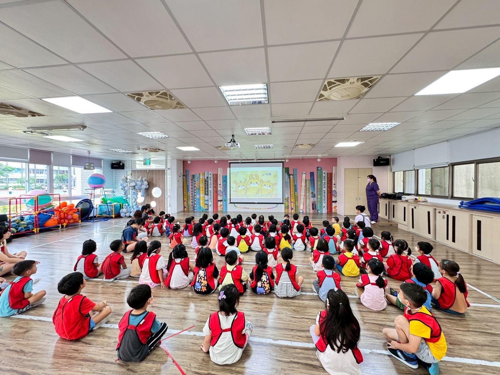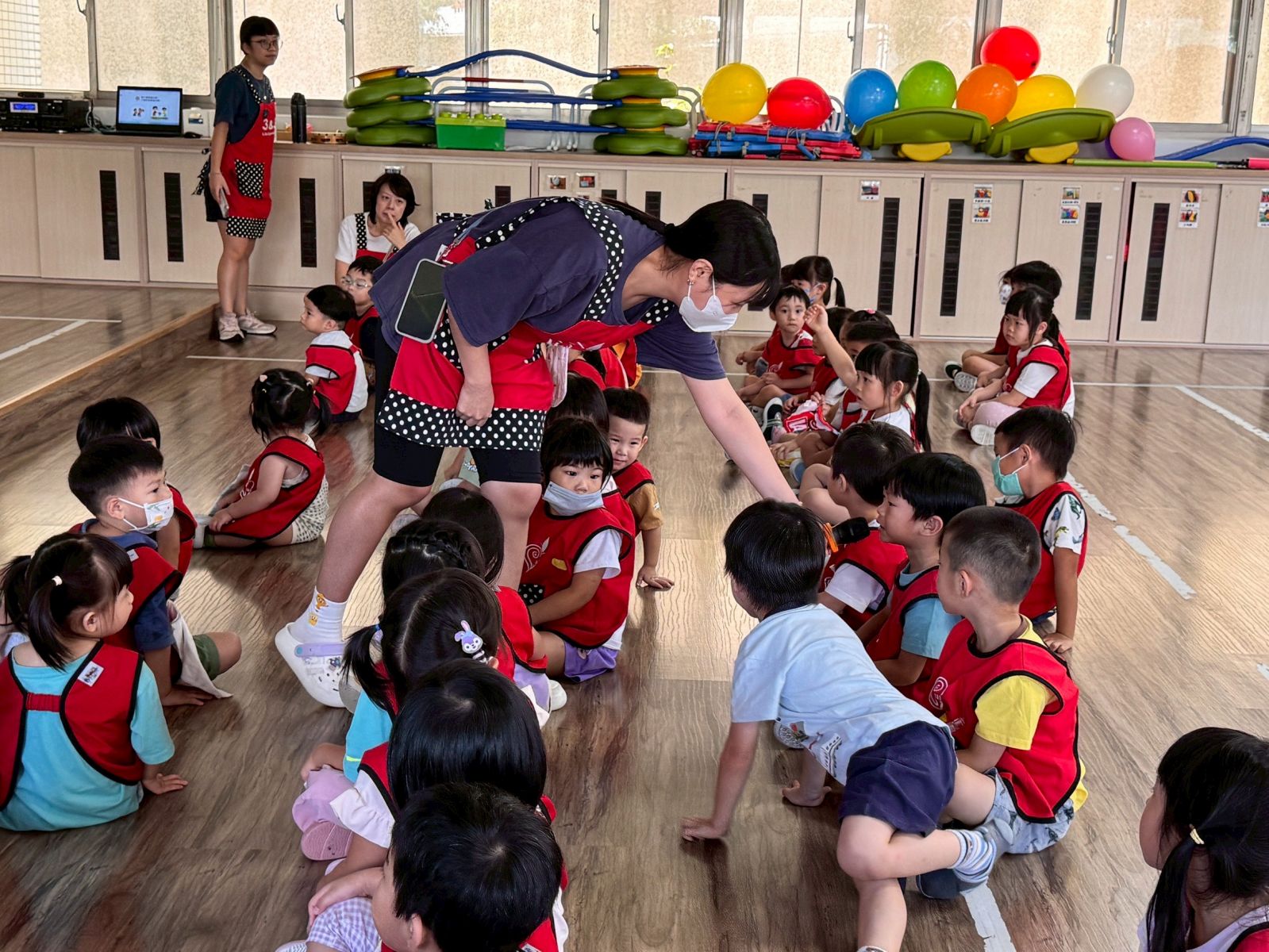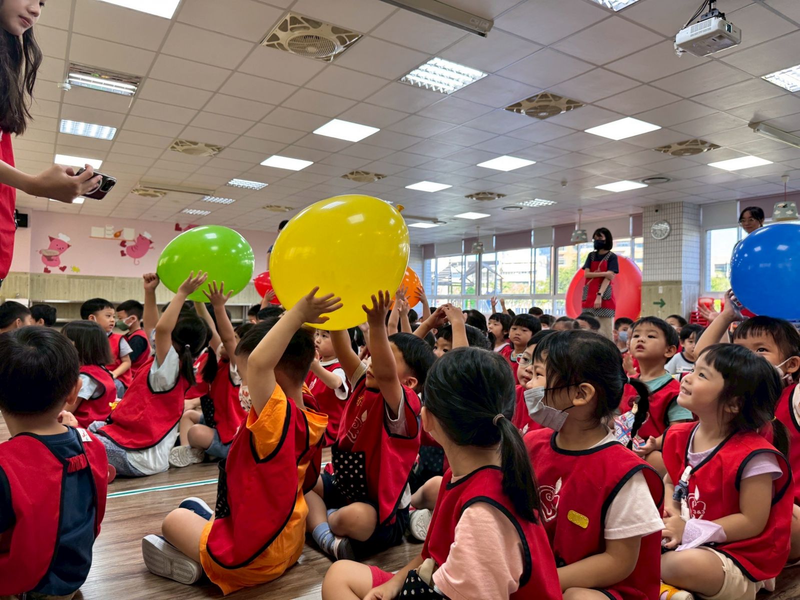 孩子們在【一起玩~不搶玩具】活動中,從老師們演示的戲劇演出中~學會如何在遊戲中和同儕分享與輪流,最後更藉由氣球合作遊戲體驗團隊精神,收穫滿滿笑聲與成長。
