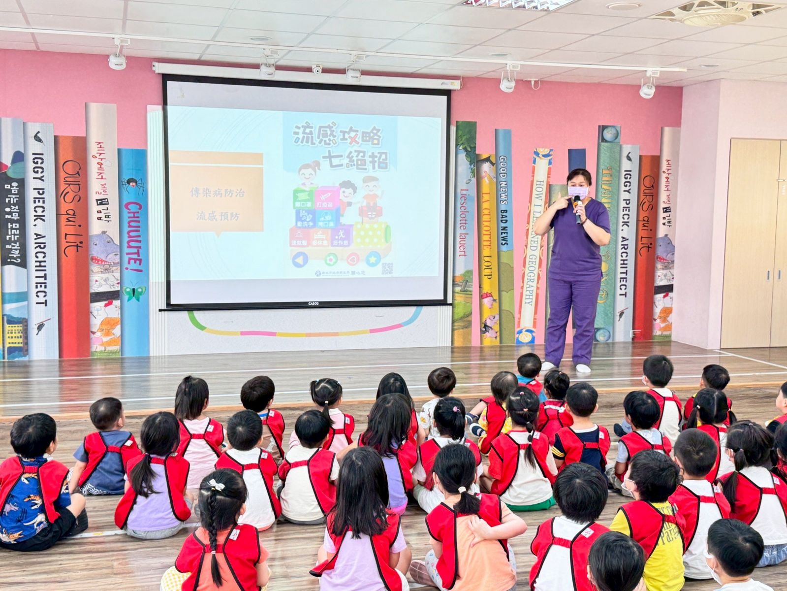 「洗洗手,病菌遠離我!」本次健康教育活動由護士阿姨帶領,透過PPT和影片教大家正確洗手,還介紹了登革熱、流感等傳染病。小朋友們積極參與有獎徵答、超踴躍搶答問題,不僅學到知識,也收穫滿滿成就感!