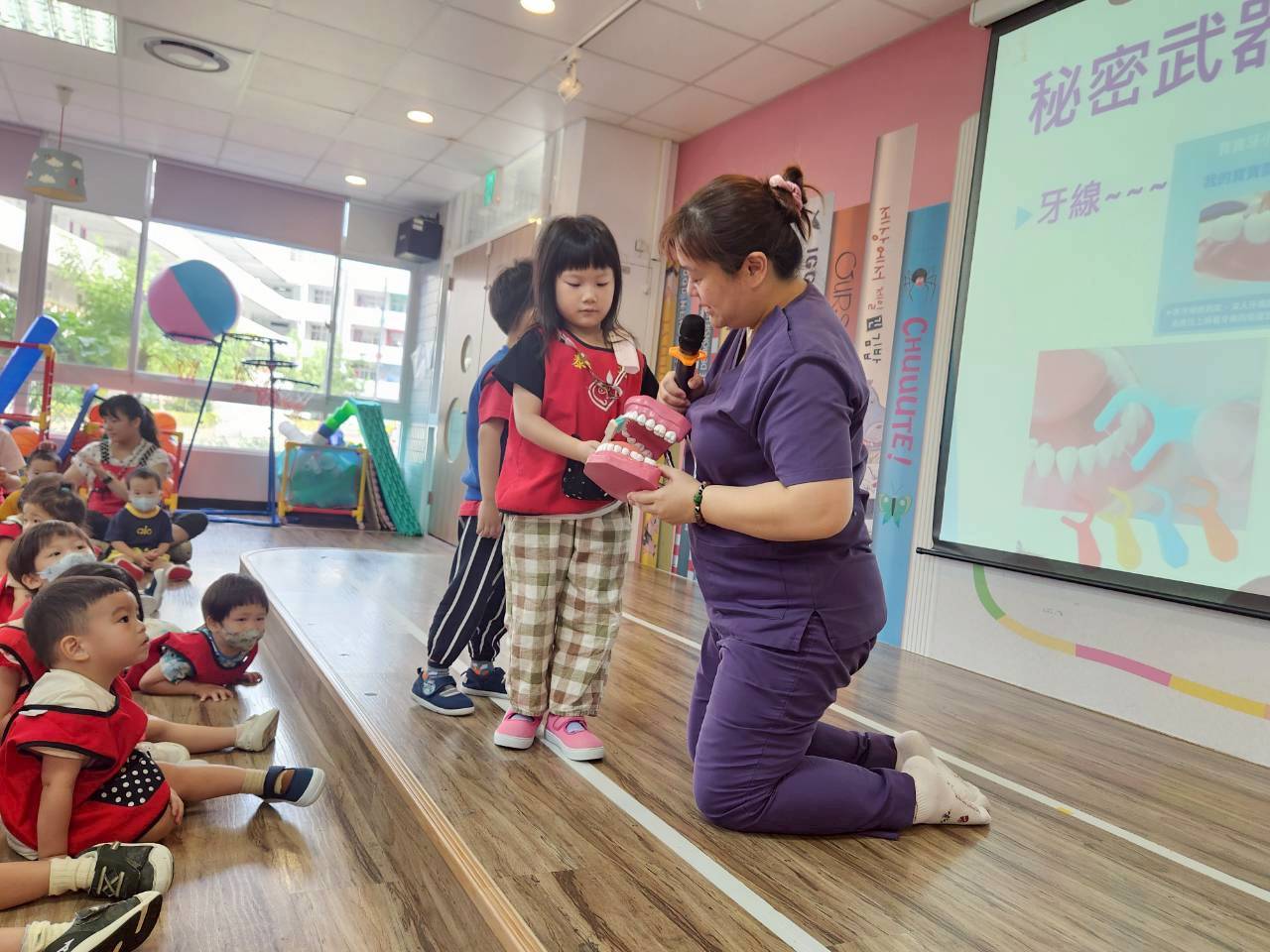 本次健康教育以刷牙歌揭開序幕,帶領幼兒進入有趣的口腔保健主題,讓寶貝們在快樂歌聲中學會愛護牙齒。透過PPT、影片認識牙齒的重要功能與預防蛀牙的方法,並輪流拿起牙刷在模型上練習貝氏刷牙法,最後的有獎徵答氣氛熱烈,小朋友們個個都成了「護牙小達人」!