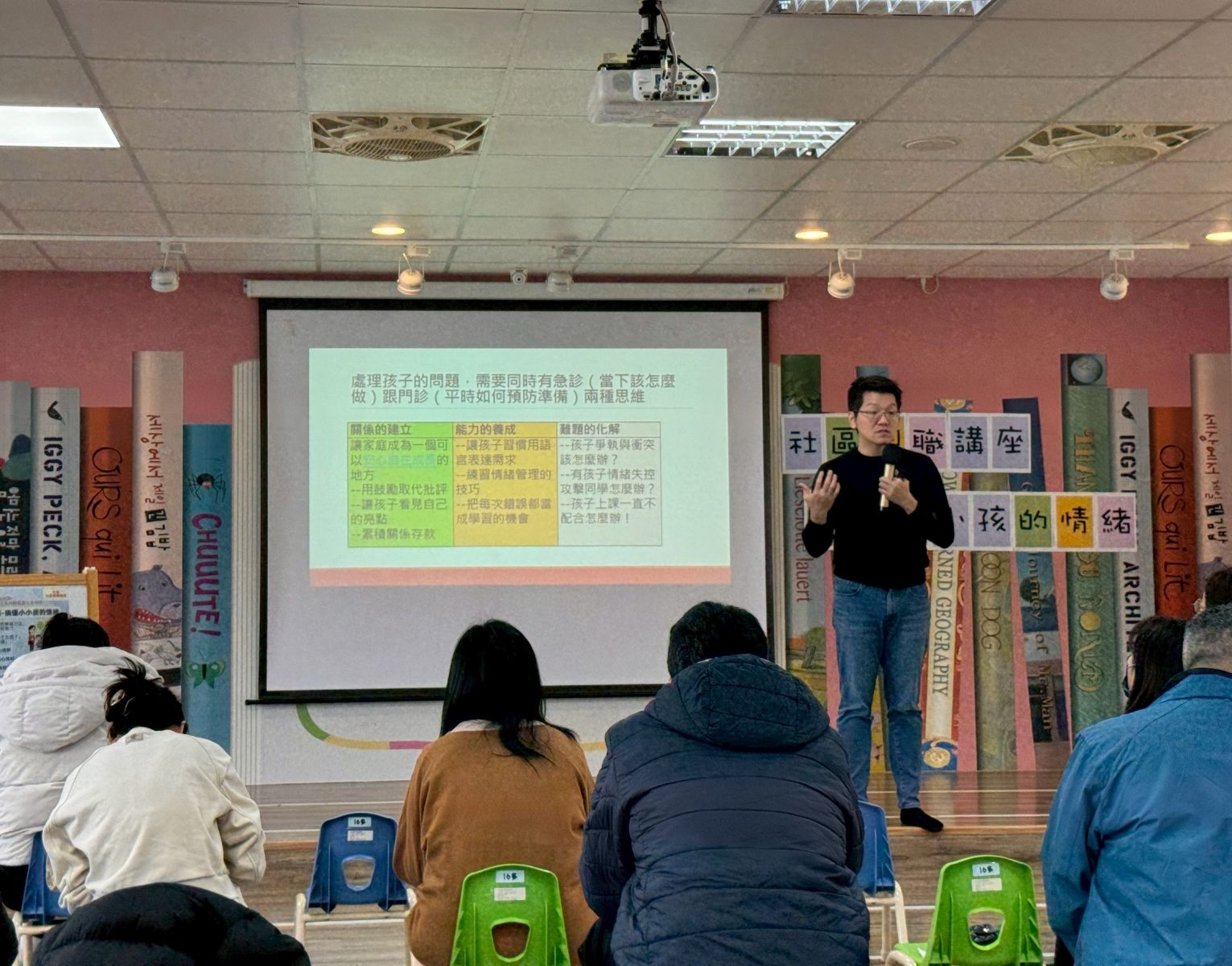 親職講座於家長簽到入座後正式展開,由黃柏嘉心理諮商室講師帶領,主題為「搞懂小小孩的情緒」。講師從情緒本質談起,說明情緒沒有對錯,重點在於理解與回應。透過實例分享,引導家長學習傾聽孩子需求、以穩定情緒陪伴孩子成長,並運用語言引導孩子表達感受,建立安全感與良好的情緒管理能力,促進親子關係更加穩定與正向。