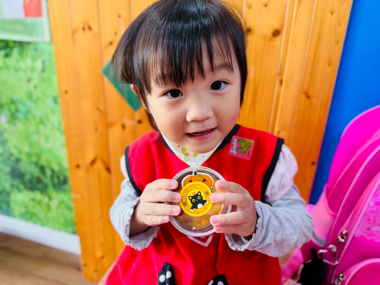 十月的月底是萬聖節喔~孩子們都很期待,因此老師這次帶孩子們一起做巫婆的手指餅乾,老師先介紹材料並講解步驟,接著讓孩子們操作將奶油、麵粉、泡打粉、黑糖、蛋液一起混合,混合好之後將麵糰分糰,再讓孩子將麵糰搓成長條狀放在烘焙紙上,放完之後讓孩子拿安全刀板輕輕地畫上一條條手指的紋路並在前端放上葡萄乾壓扁,最後放入溫暖的烤箱慢慢的烘烤,烤完後巫婆的手指餅乾就完成囉!孩子們看到自己做的作品很興奮也很期待能帶回家與家長分享喔~