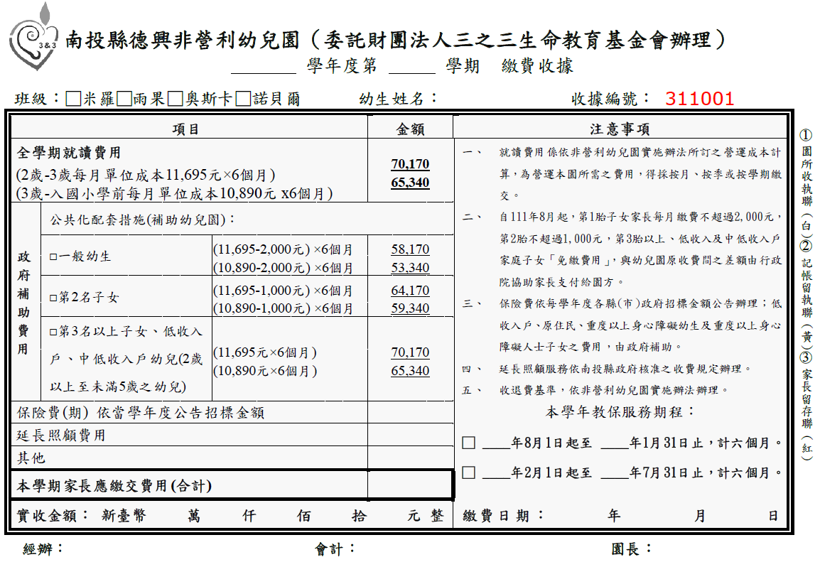 南投縣德興非營利幼兒園(委託財團法人三之三生命教育基金會)