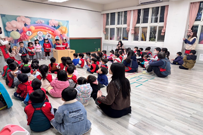 4月的慶生會來囉~小壽星們上台接受大家的祝福 |