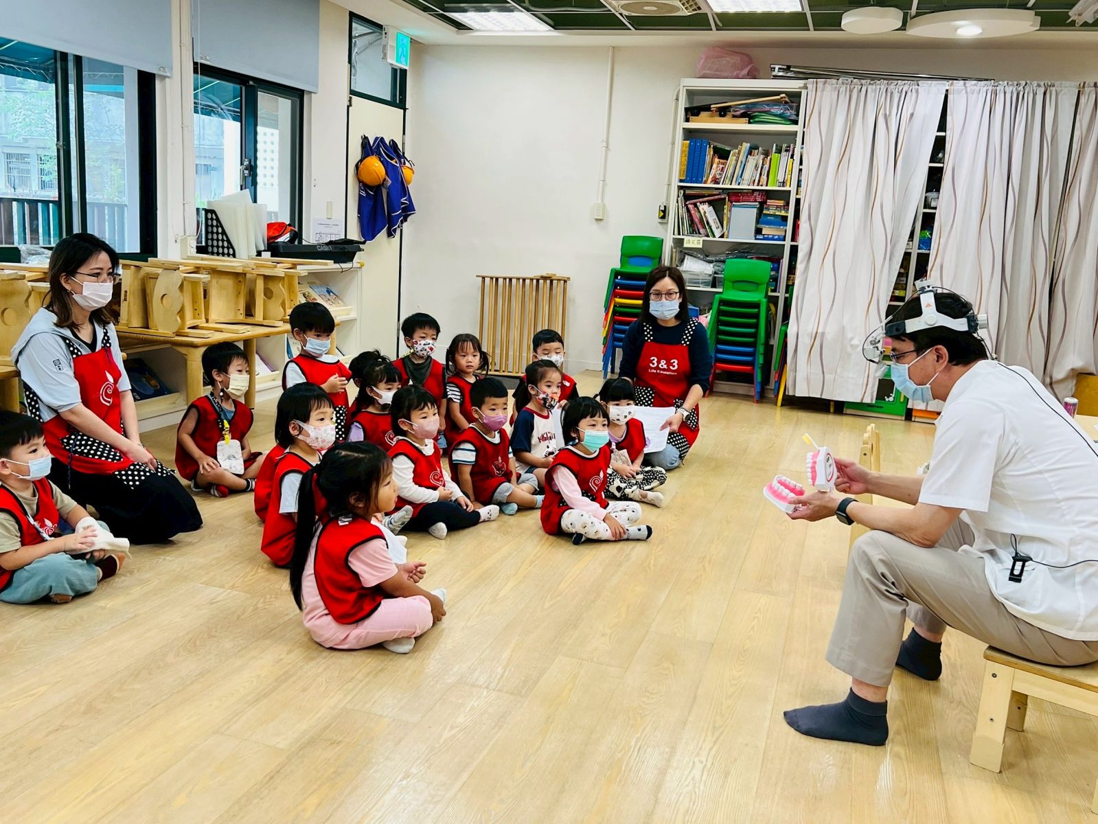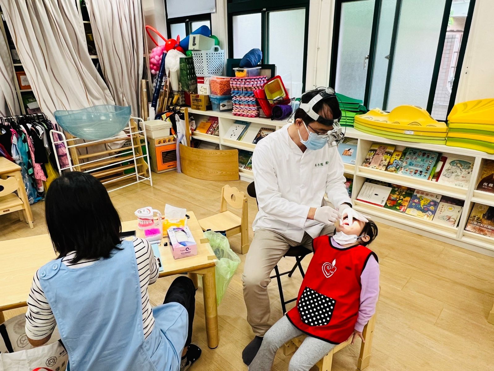 本園每半年配合政府補助政策,與牙醫診所合作為幼兒進行全園塗氟服務。牙醫師與護理人員親自到園,為孩子們進行口腔檢查及塗氟保健,有效預防蛀牙,建立良好的口腔衛生習慣。過程中也透過簡單說明與互動,提升幼兒對牙齒保健的認識,讓家長更安心。
