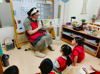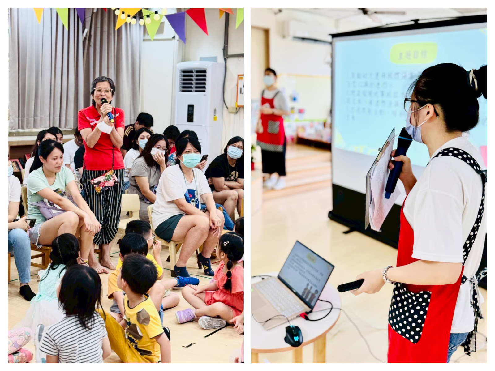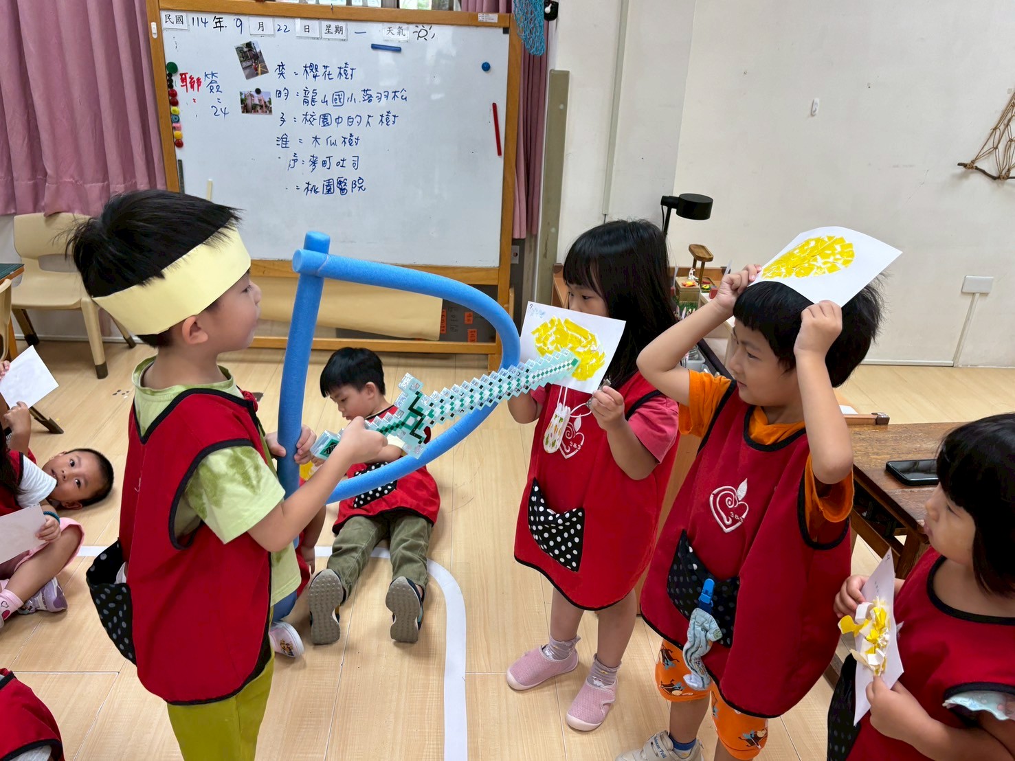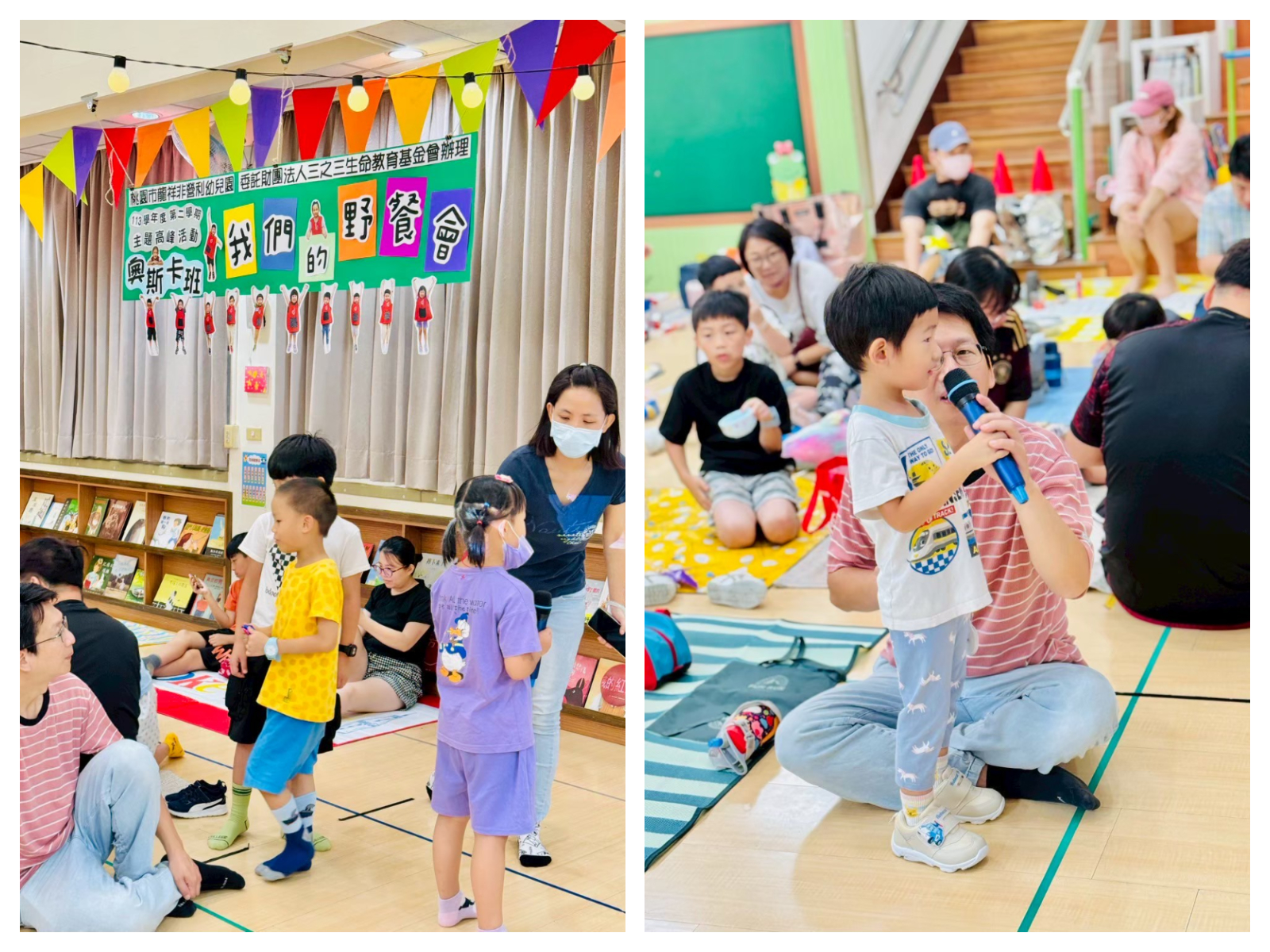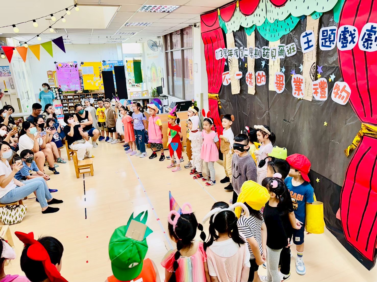 老師將孩子們與社區公園之間的生活經驗,彙整成一個完整的故事後,透過戲劇與繪本的方式,具體和家人們分享獨屬於孩子們的故事【走呀走!去公園和埤塘】,進而瞭解本學期主題課程的學習成果。