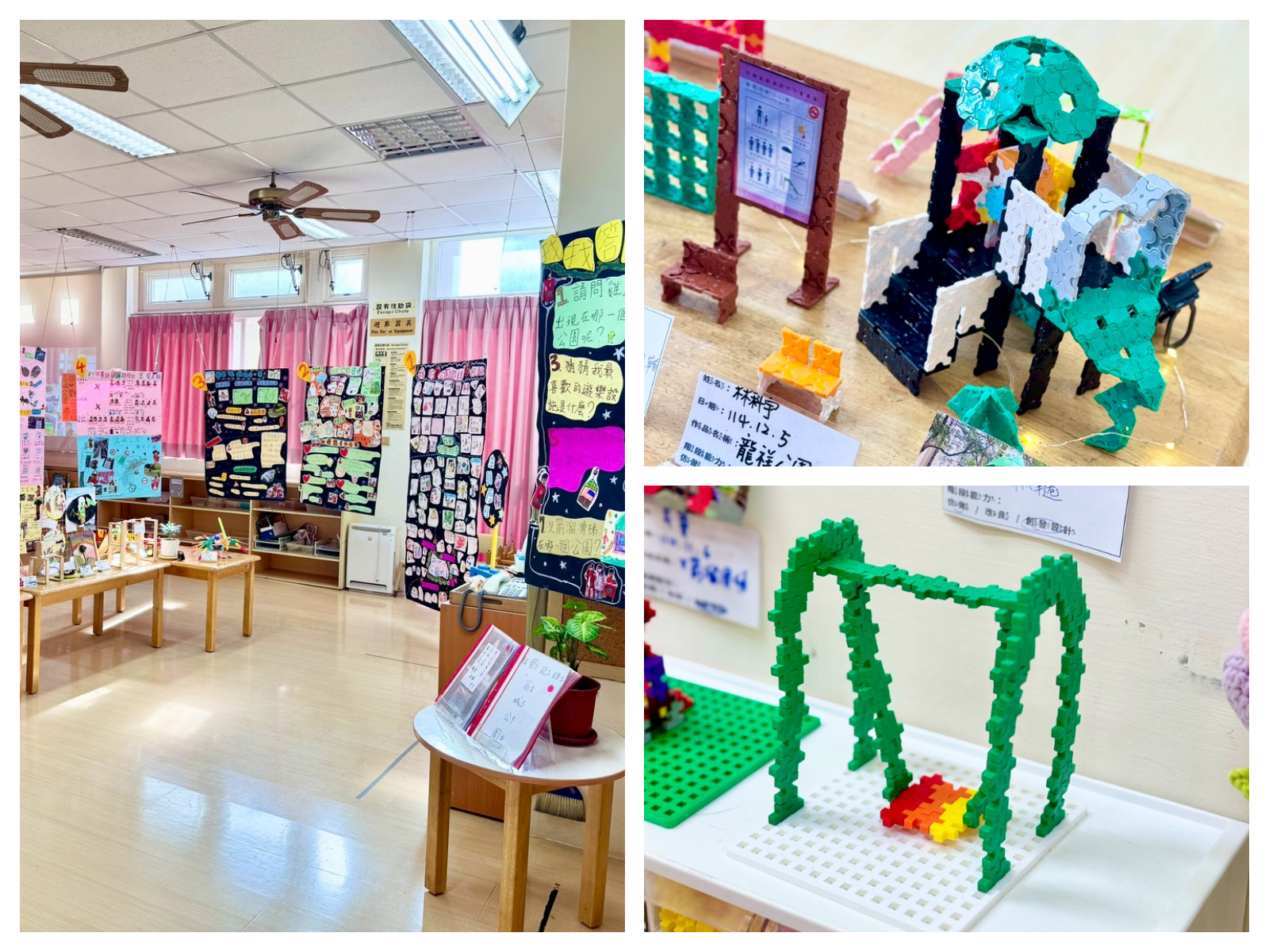 藉由生態埤塘公園的統整經驗海報與幼兒於觀察埤塘中的圖像紀錄,以及觀察後運用不同呈現方式的作品,以展覽的方式呈現,讓家長能在參觀與體驗展覽活動過程中,與幼兒互動交流本學期觀察與紀錄社區中各個埤塘的經驗,進而瞭解本學期主題課程的學習成果。