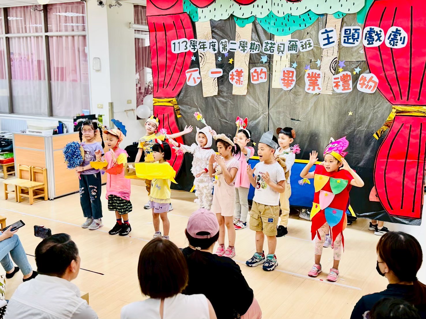 將對戲劇主題的探究歷程,運用繪本演出的方式,整合所有的學習經驗,和家人們分享獨屬於諾貝爾班的戲劇表演【不一樣的畢業禮物】,進而呈現本學期主題課程的學習成果。