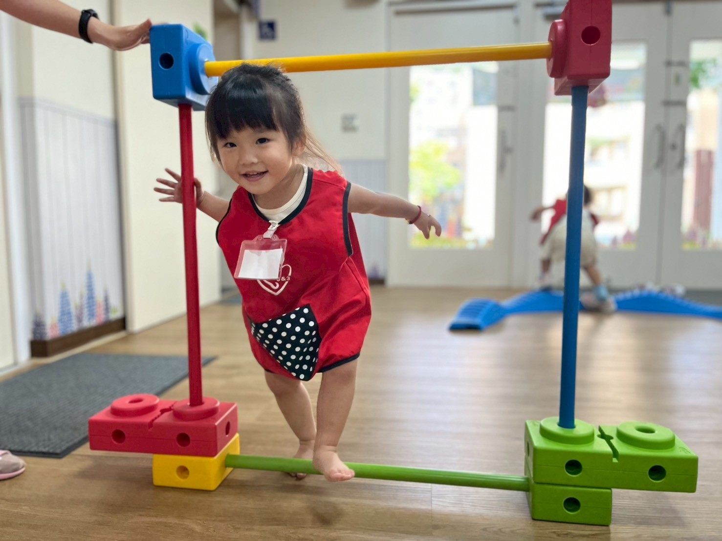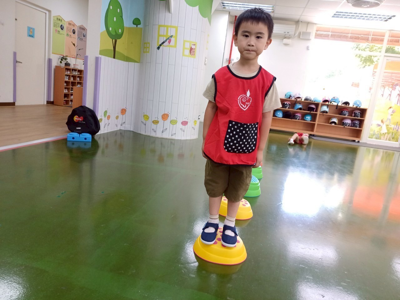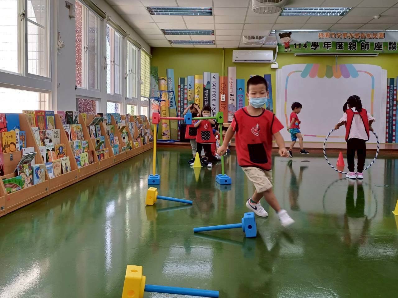 各班大肢體運動活動照片,老師每週運用不同器材,如跳繩、足球、籃球各式器材,增加幼兒體能。