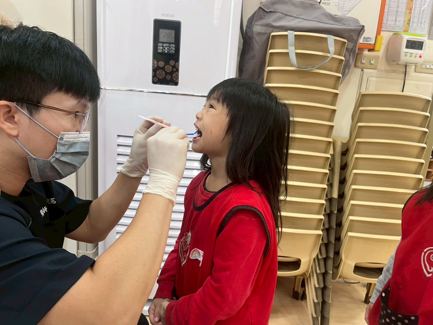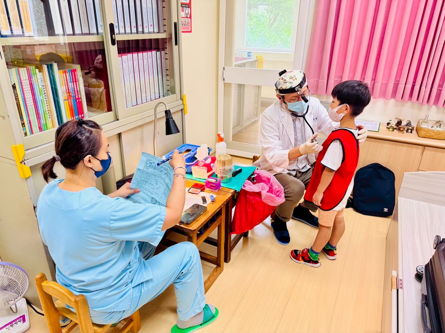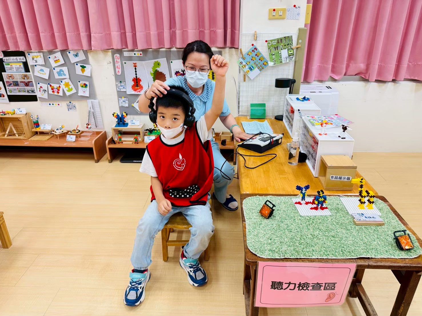 本次健檢與衛生所配合施作愛兒健康檢查活動,檢查的內容包含:口腔、視力及聽力等基本檢查。