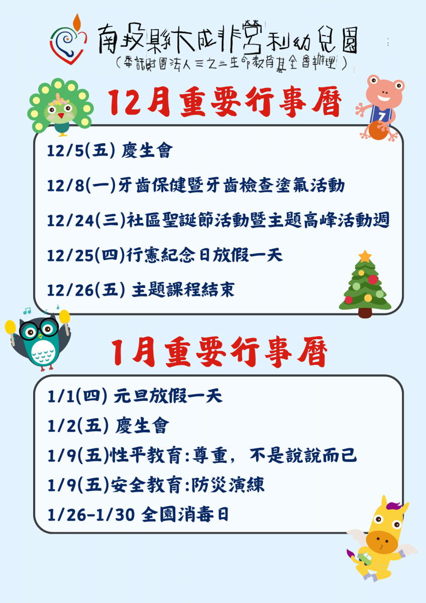 12/23-12/27社區聖誕節活動暨期末主題活動/成果展