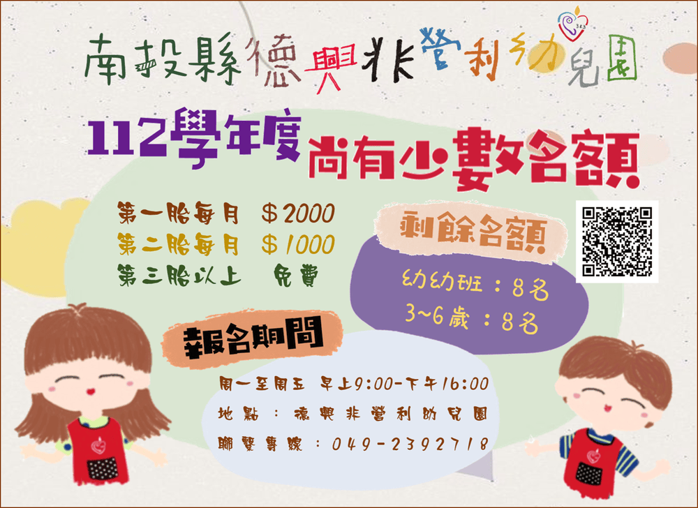 目前幼幼班與3-6y尚有8位名額 !