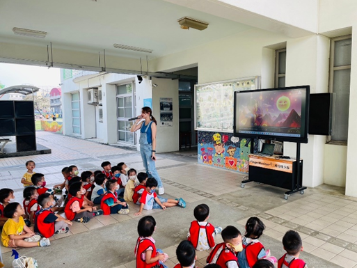 孩子們透過故事欣賞,了解中秋的由來與傳統習俗,感受節慶的文化意涵。搭配兒歌律動,孩子們以歌聲與肢體表達節日的歡樂氣氛。