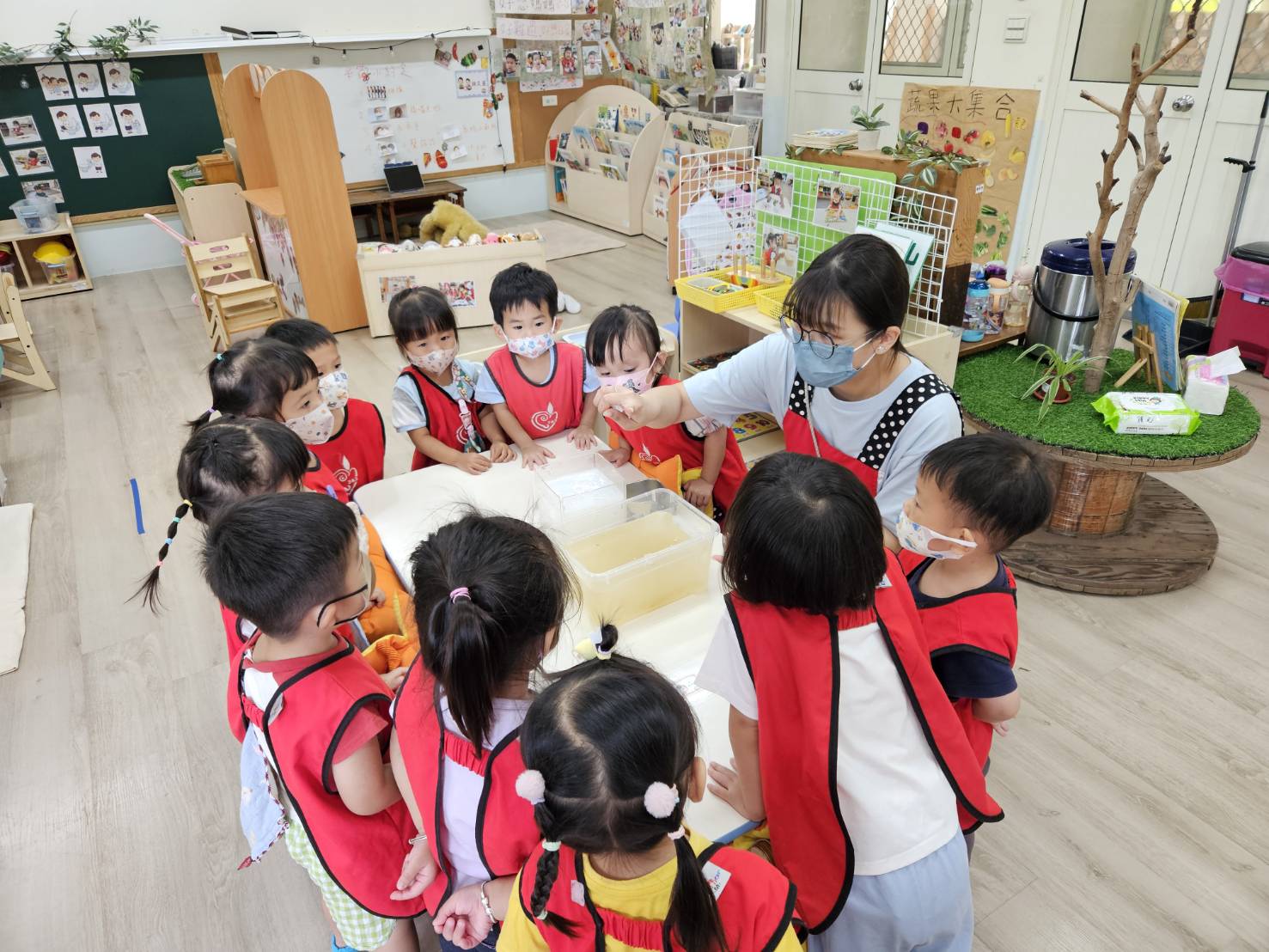 .準備胡椒水及肥皂水,邀請孩子將手放進肥皂水再放入胡椒水中,讓孩子們觀察手發生什麼事情?並運用簡單口語描述觀察結果。
