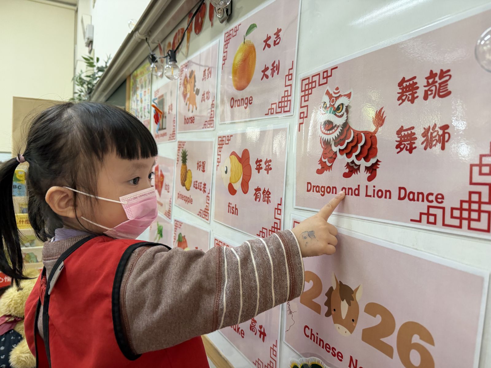 .介紹過年吉祥話,運用繪本及圖卡加深孩子記憶,孩子們能描述圖片的物品。
