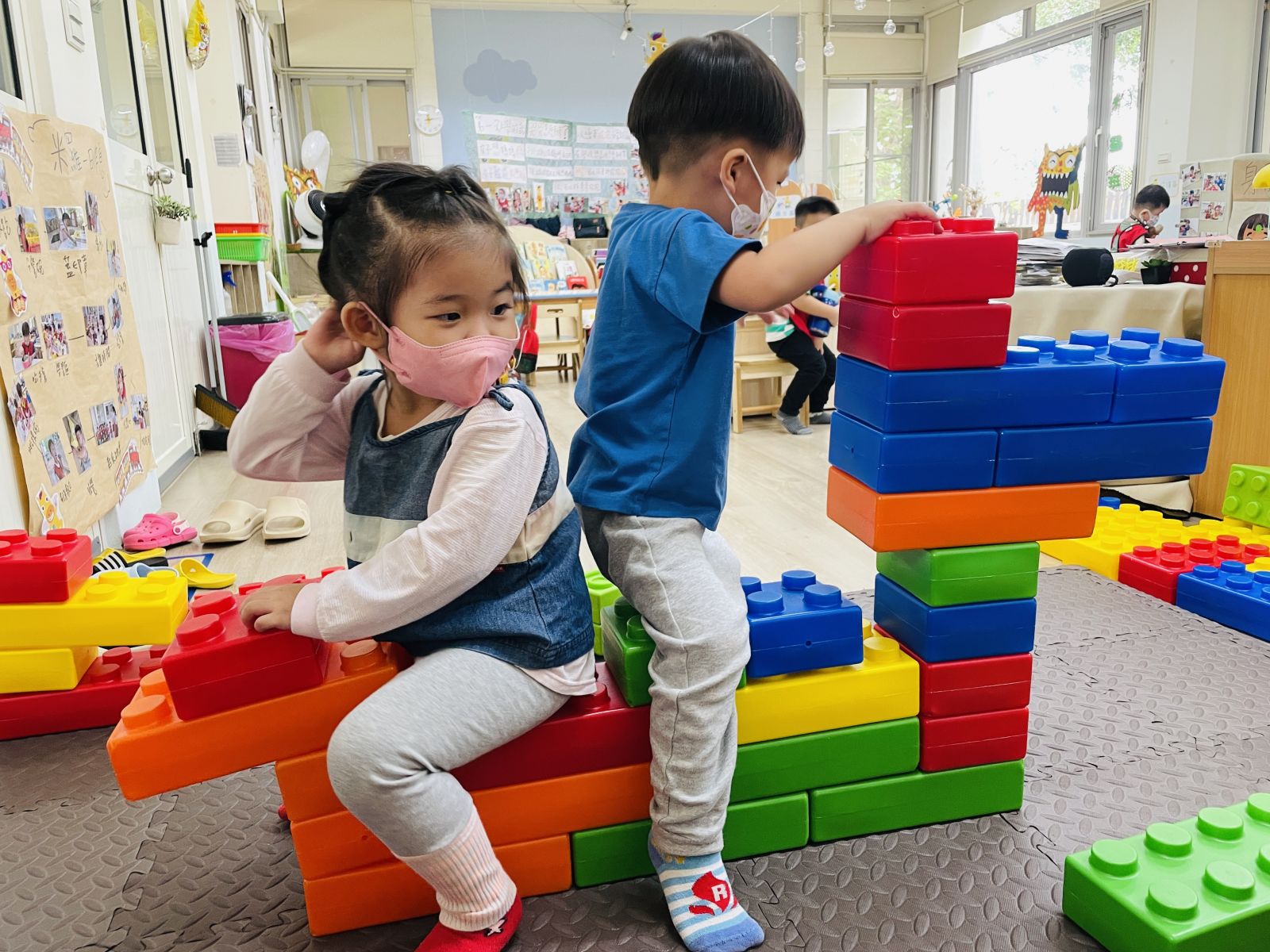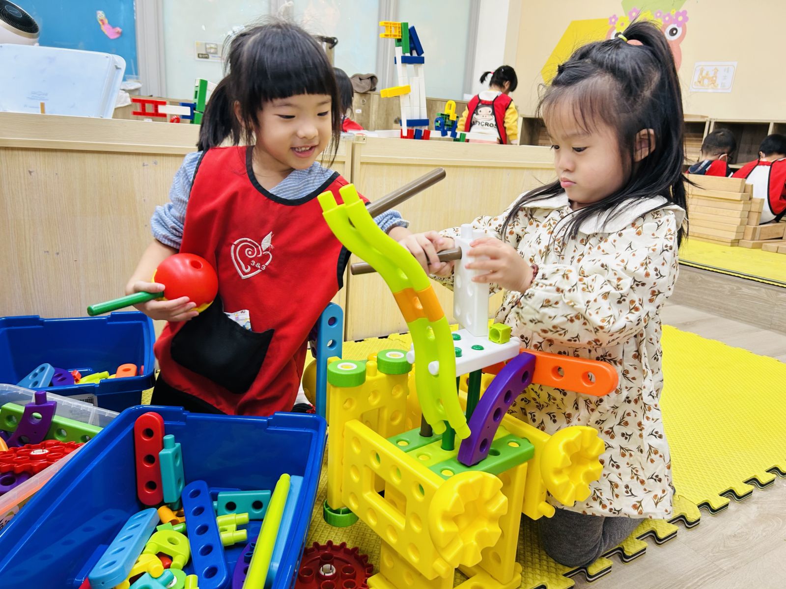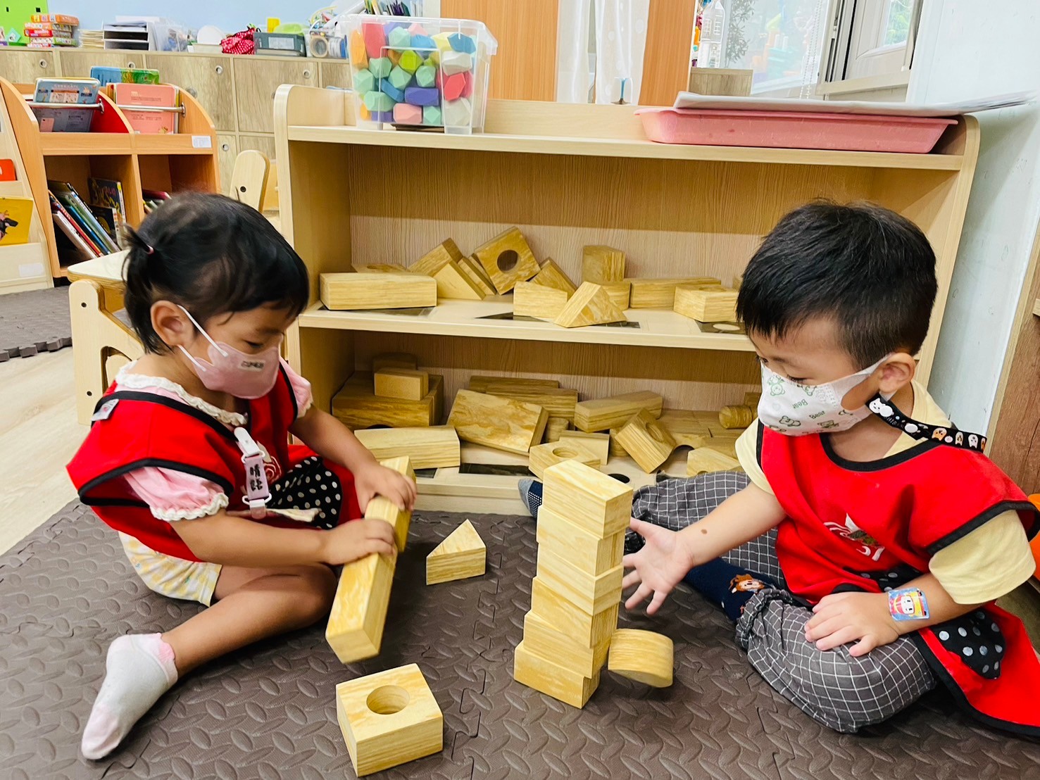 .我們一起組合積木、一起玩角色扮演。