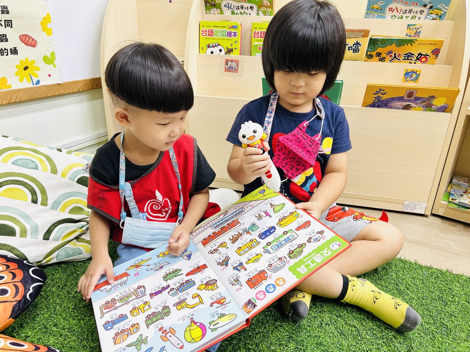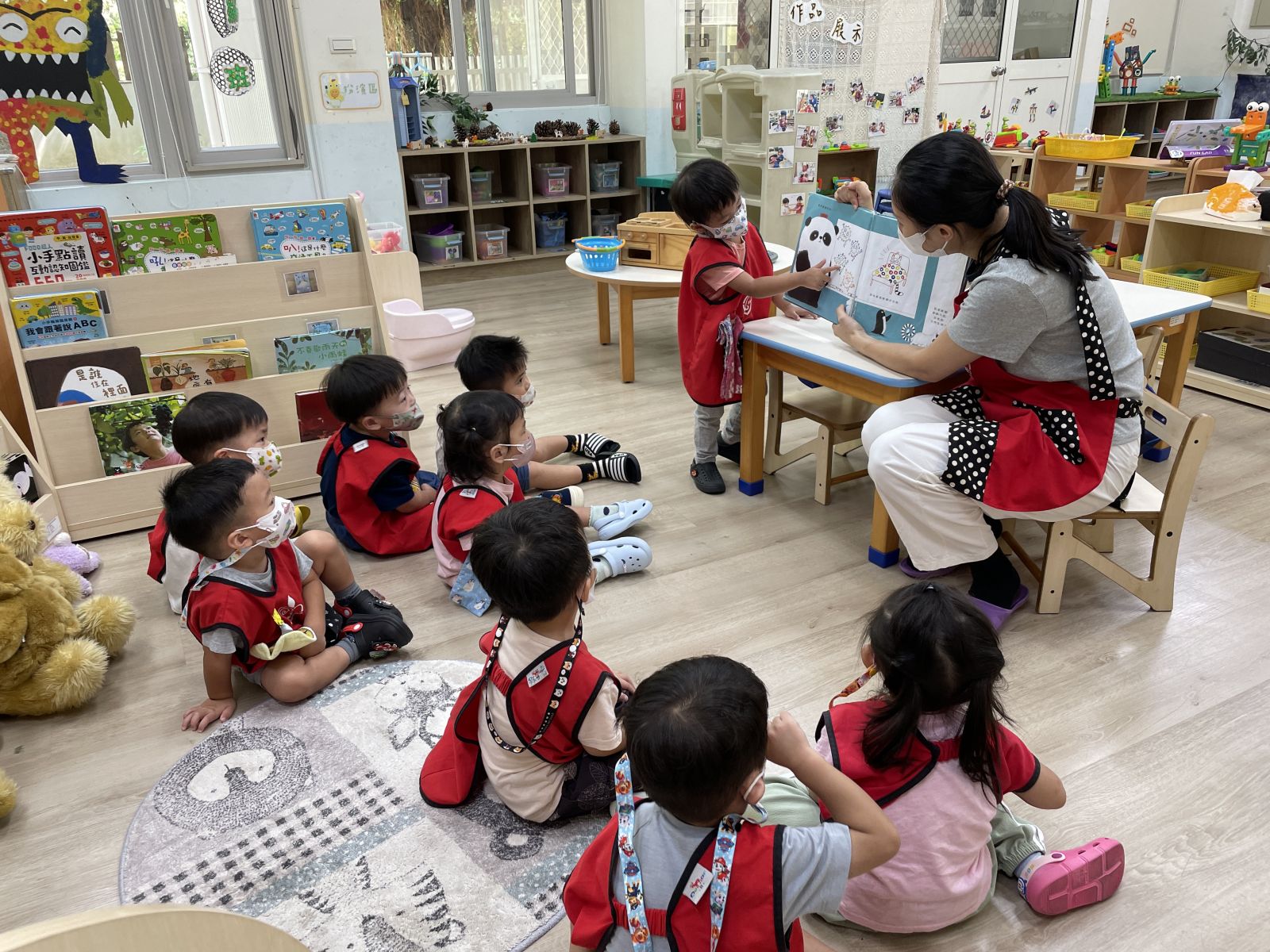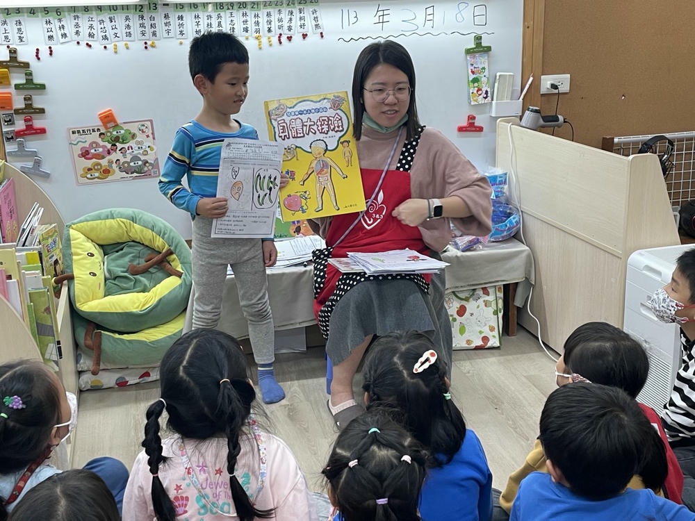 .透過繪本「洗洗手,熊貓先生」,一起討論了細菌的危害,並在遊戲中引導孩子尋找細菌可能存在的地方。