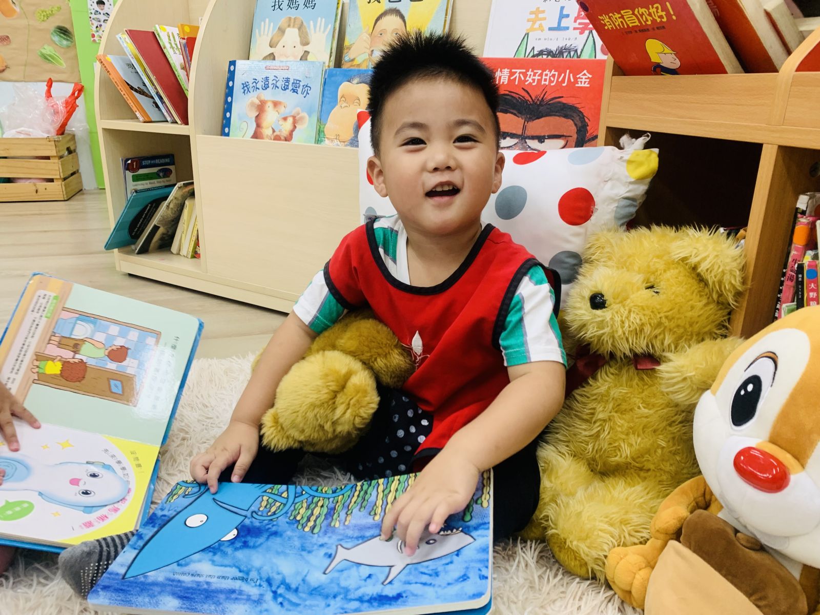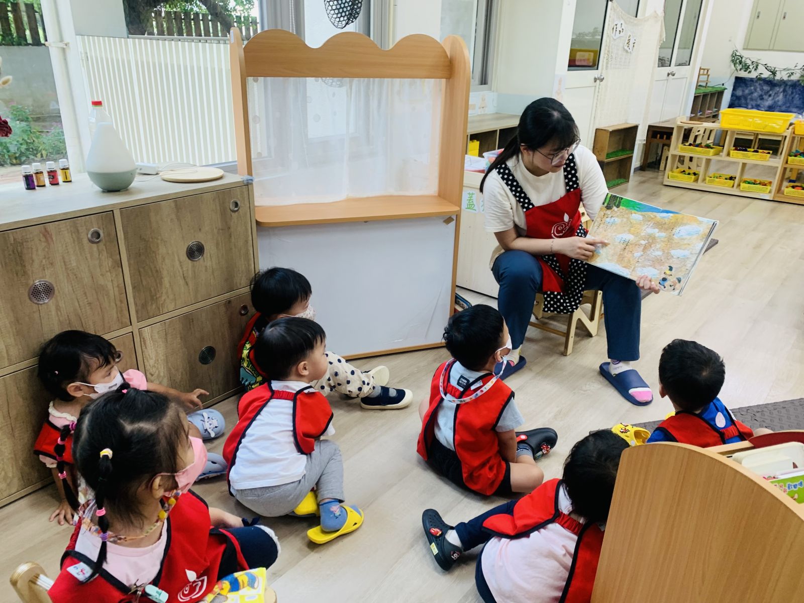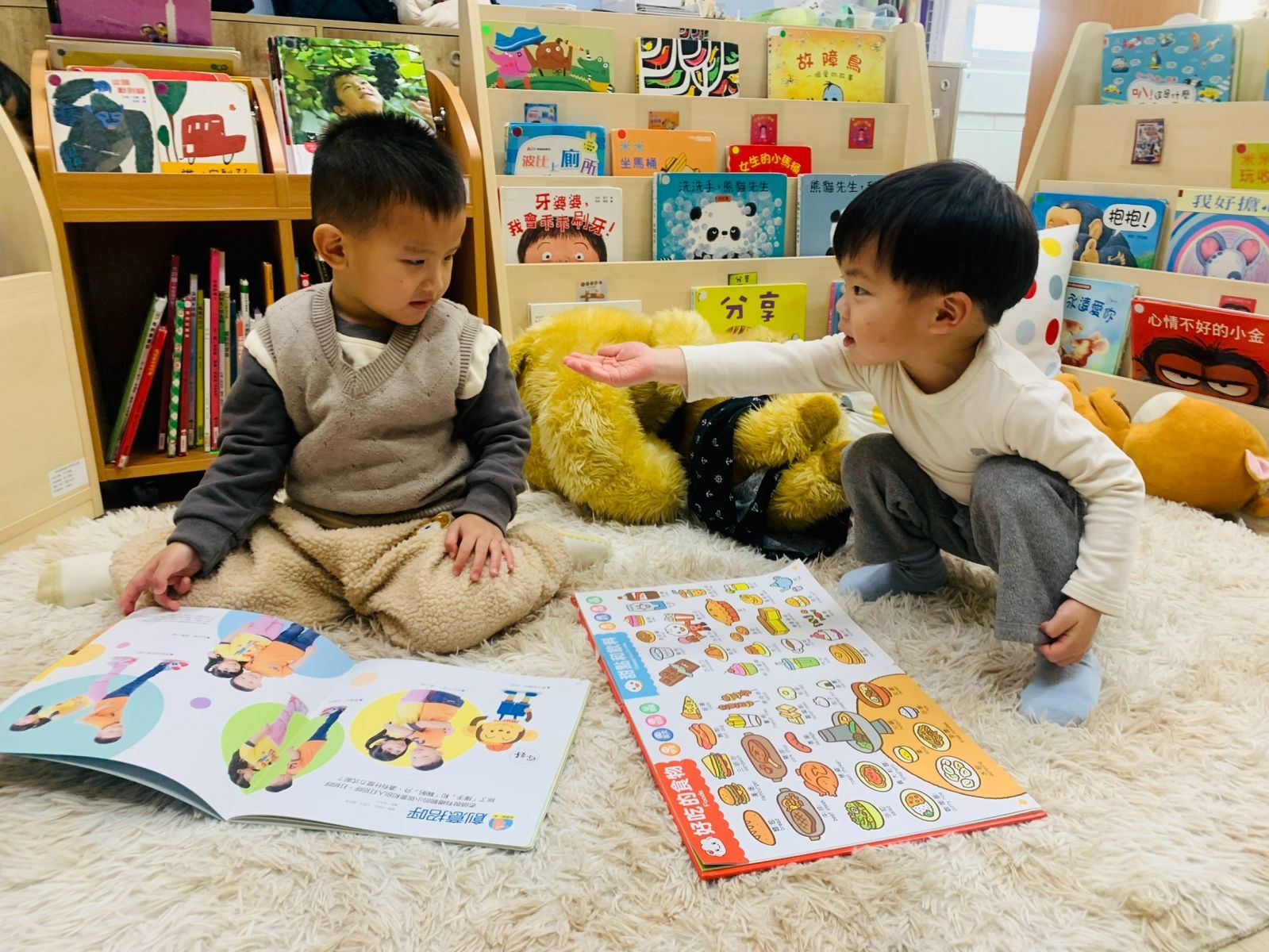 .透過繪本「洗洗手,熊貓先生」,一起討論了細菌的危害,並在遊戲中引導孩子尋找細菌可能存在的地方。